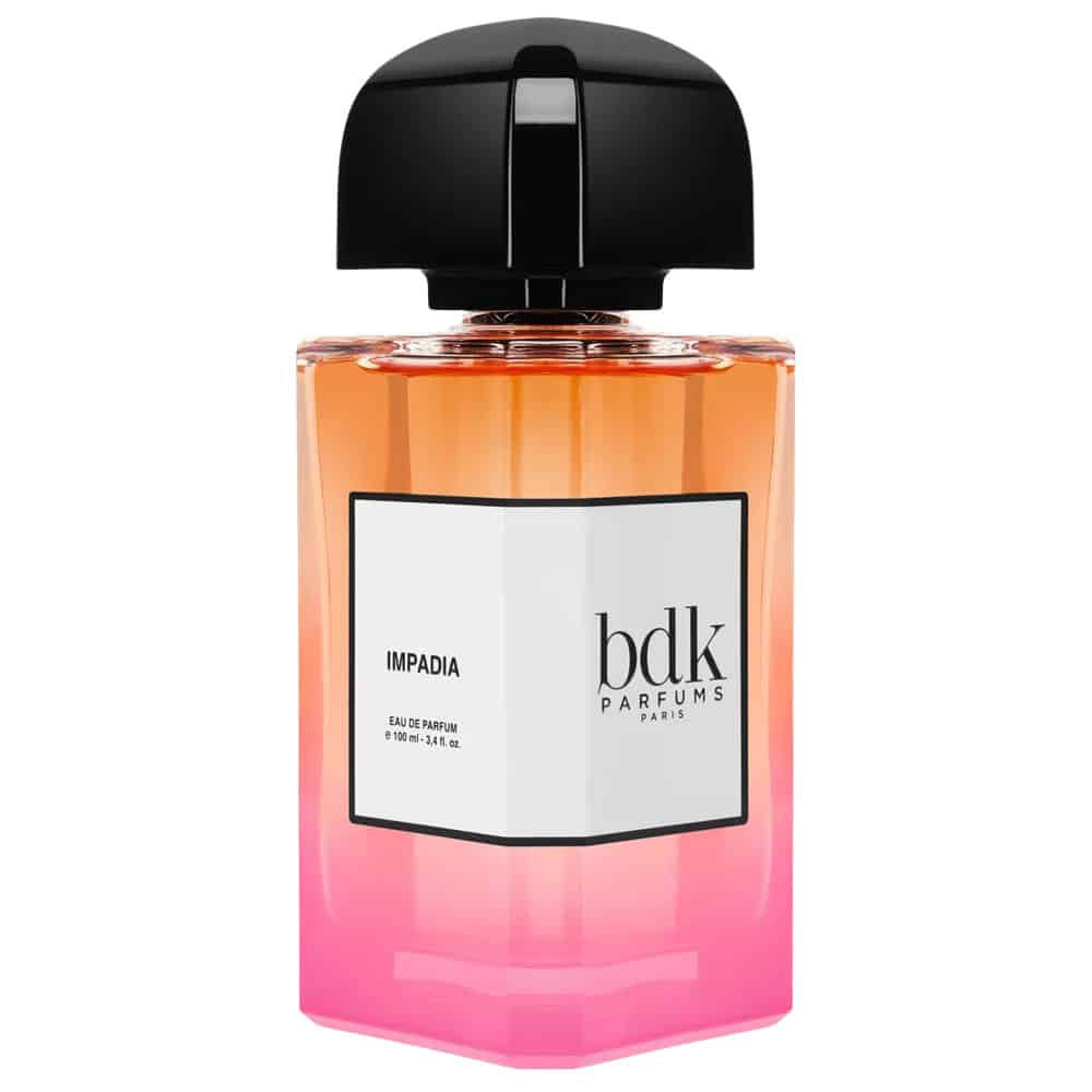 Impadia takes inspiration from the glow of Parisian skies just before dusk, with an ombre bottle slowly turning from orange to pink in the tone of a sunset. Impadia takes two forms of the best rose in perfumery, Bulgarian rose oil and Turkish rose absolute, chosen for their distinct qualities, and creates a seamless heart note.