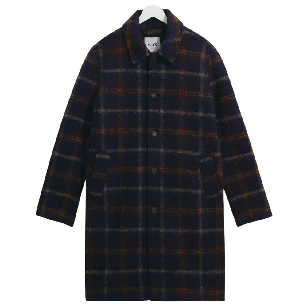 - Wax London Stan – Navy Check Wool Car Coat