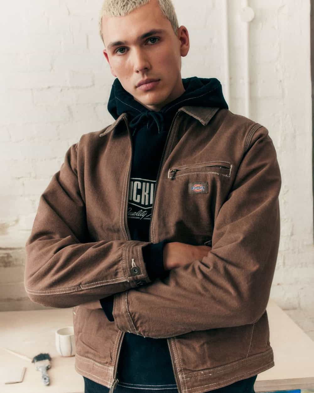 Staying on the cropped theme, mechanics jackets, like the Carhartt Detroit, have been peaking in popularity for a while now. They’re cut from heavy-duty canvas or cotton, with a zippered chest pocket and contrast collar. And for this particular trend, the more battered, busted and lived-in they look, the better.