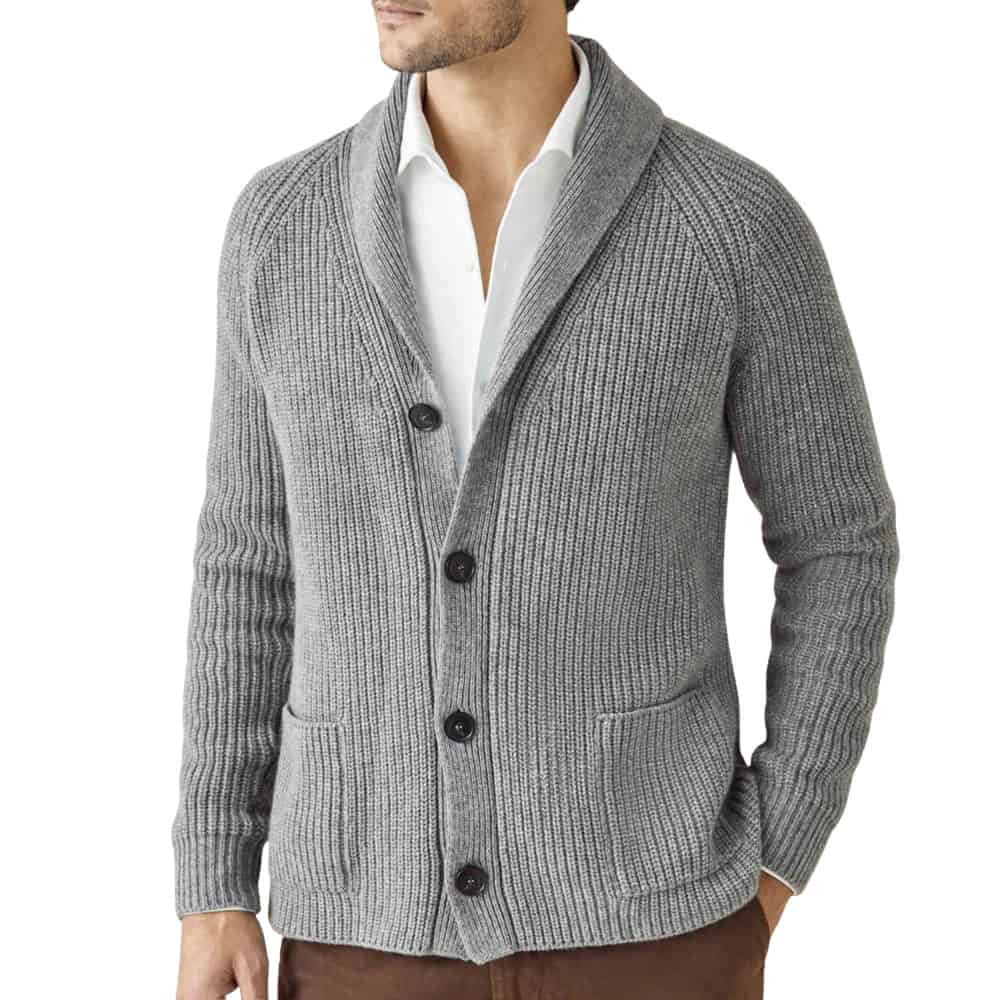 Lastly, a shawl-collar cardi offers a cosier, winter-ready look that works well with smart-casual outfits.