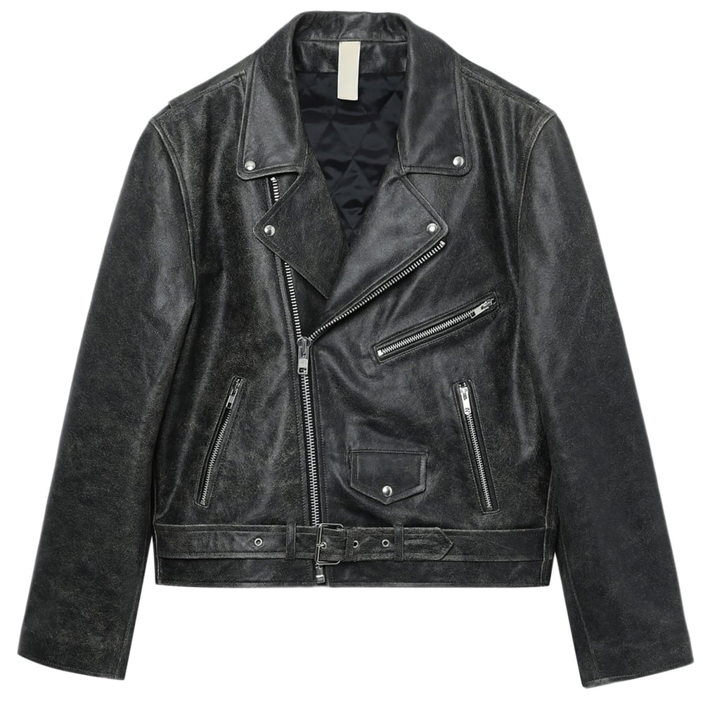 Created by Schott in the late 1920s and popularised by Hollywood heartthrobs of the 1950s, the leather motorcycle jacket was then, and still is, a symbol of anti-authority and rebellion… that just so happens to look great with a pair of jeans. It features an asymmetric zip, oversized lapels, zip-pocket detailing and a belted waist.