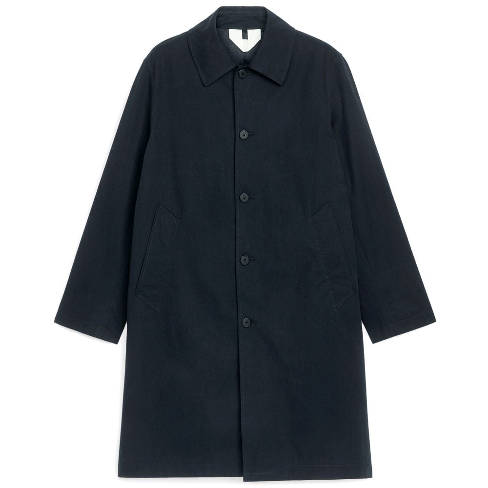 With its long, draping cut and classic collar, this understated overcoat is a stripped-back relative of the more heavily embellished trench coat. It’s cut slightly oversized to accommodate multiple layers beneath it and can also be worn over a suit jacket with padded shoulders. Designs vary from piece to piece, but a car coat will typically feature a button front, two slit pockets and is traditionally made from gabardine, favoured for its smart looks and water-repellent properties.