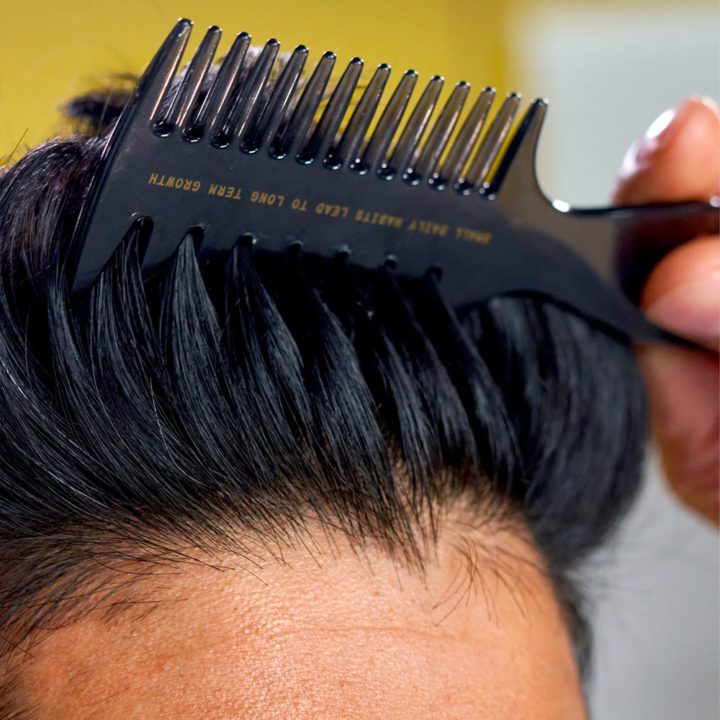 It works like a combination massager/exfoliator and when used daily, helps promote a healthier scalp on which hair can thrive.
