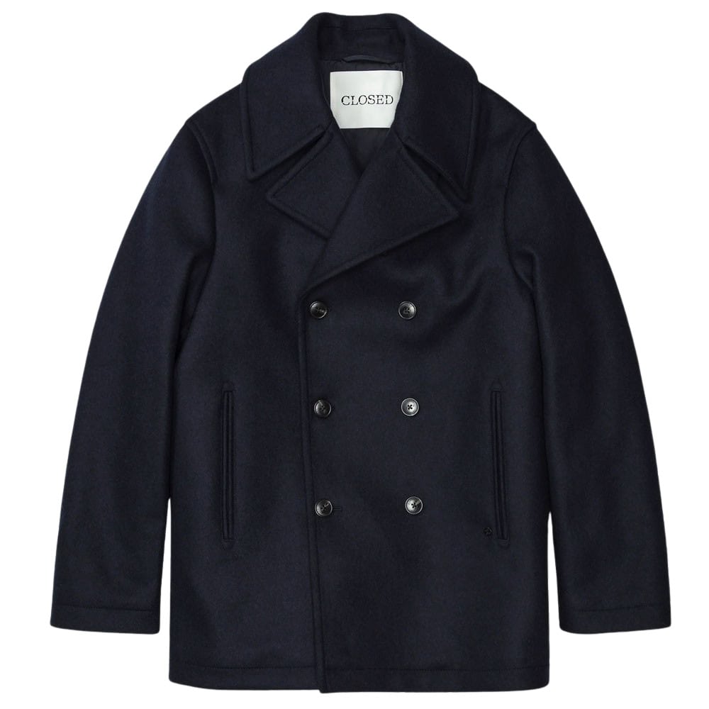 A classic peacoat will be cropped in length, feature broad lapels reaching almost across the shoulder, be double-breasted at the front, fastened by large buttons, and to the sides house vertical or diagonal-slash pockets. You may even find some iterations with epaulettes, but this is perhaps a step too far.