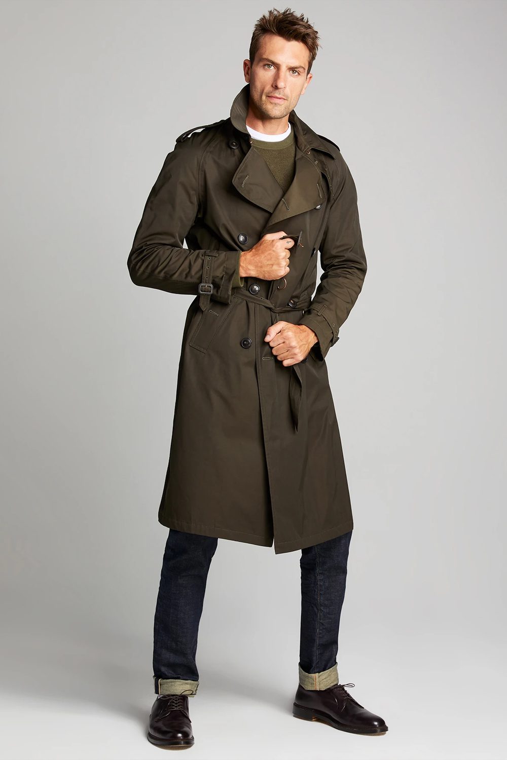 The finest trench coats have always been made from waterproof, heavy-duty cotton gabardine. Lengths vary wildly, finishing anywhere from waist to ankle; shorter guys should pick something that hits mid-thigh, while taller men should opt for something that ends at the knee or lower.