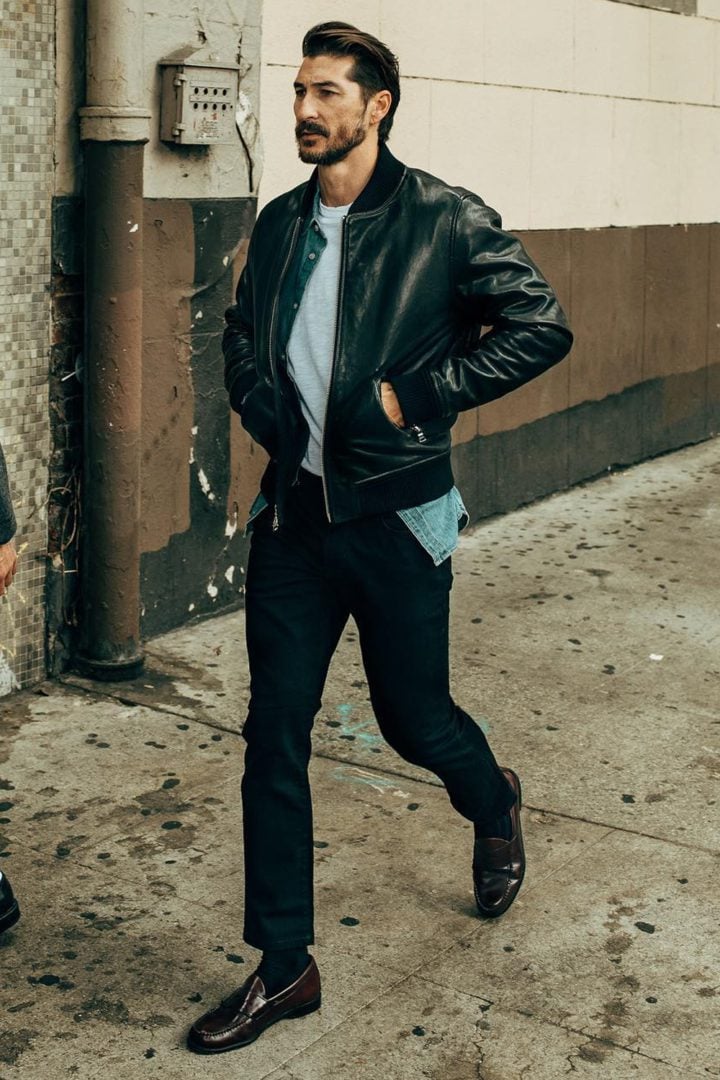 As always with shoes, the darker the colour the smarter it looks, so for the most formal option go for black or dark brown leather. The former doubles up as the ideal finish to monochrome outfits, so if you want to complete an all-black outfit of a T-shirt, jeans and leather jacket, black pennies are the perfect choice.