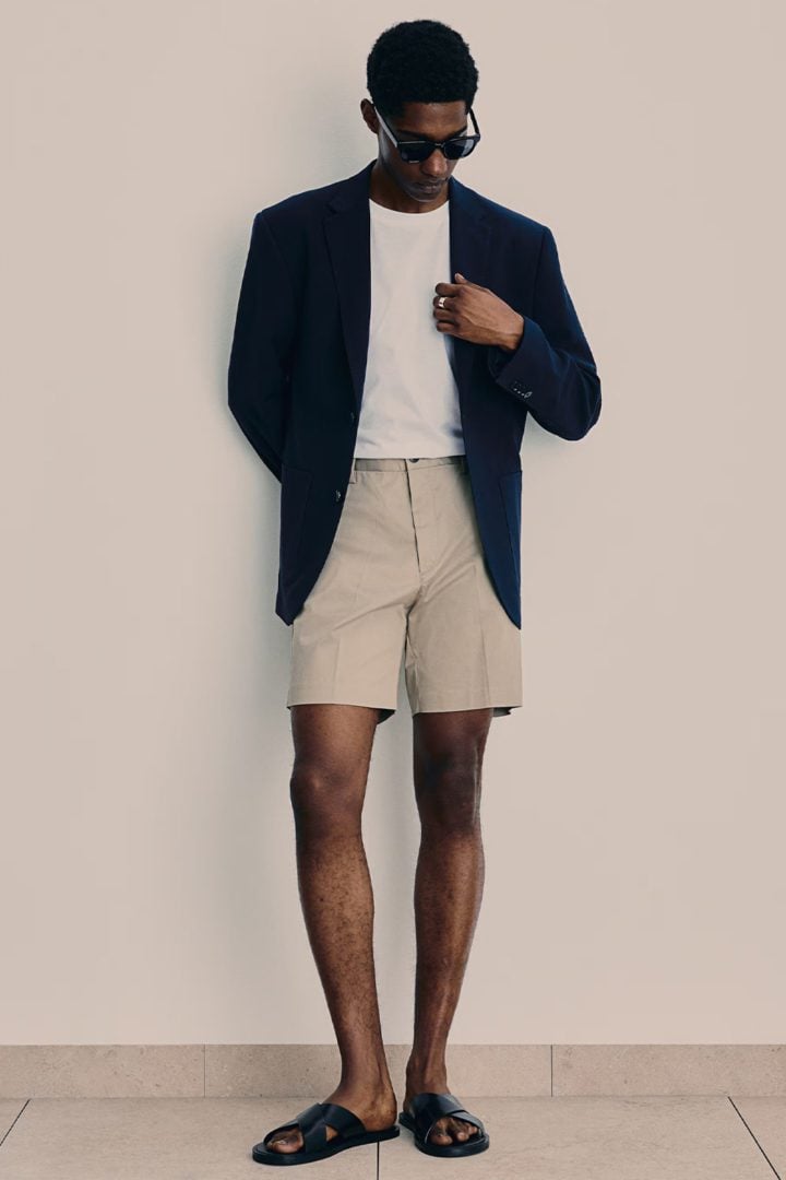 It’s a bold look, to be sure, and one that works best with looser fits and finer fabrics. Tees or tucked-in shirts both look good under the jacket, while down below, a lot of designers are opting for loafers with pulled-up socks. Like we said, bold look.