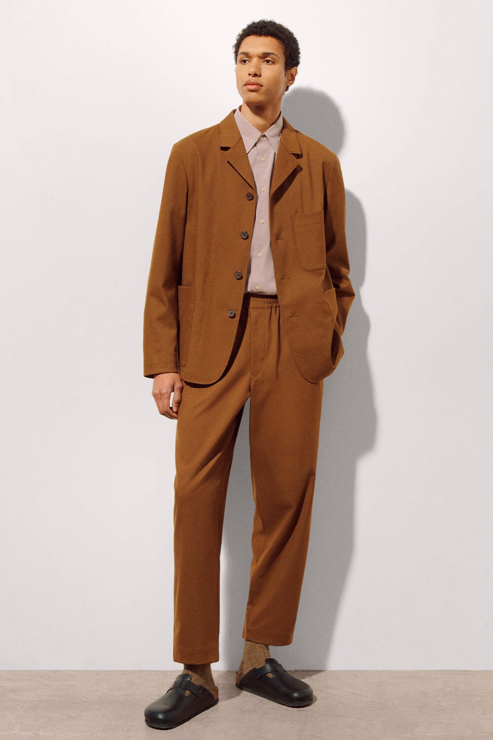 Look for two-piece garments that match, but which are softer, stretchier, techier and more unstructured than any ‘suit’ you’ve worn before. They may have elasticated waistbands. They may be stain- or wrinkle-resistant. They may even go in the washing machine.