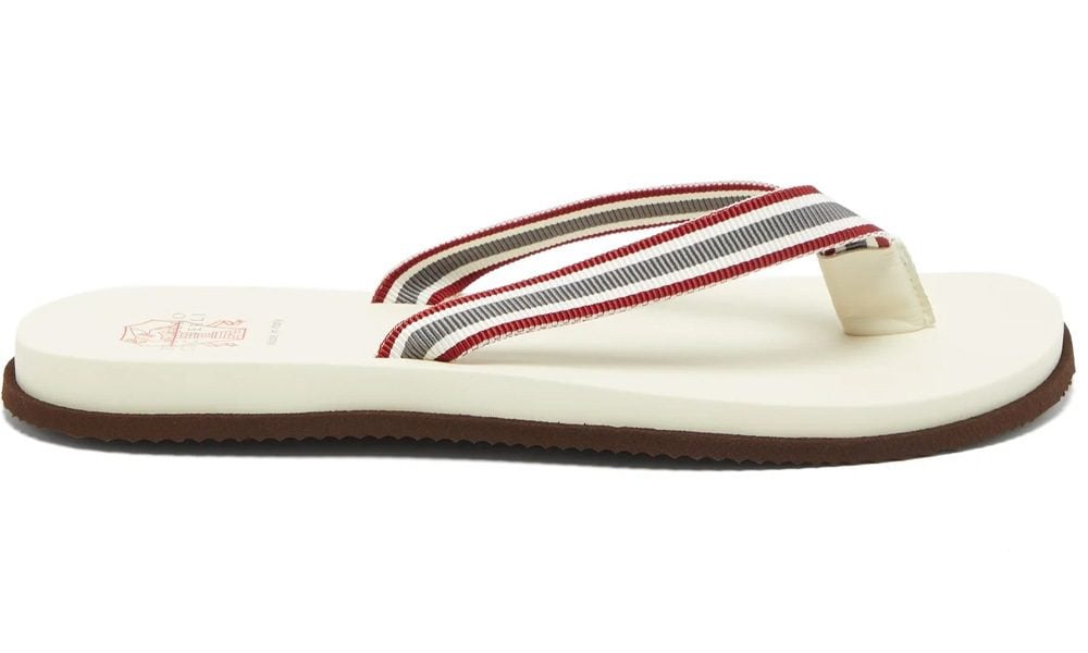 Brunello Cucinelli Striped Grosgrain Flip Flops