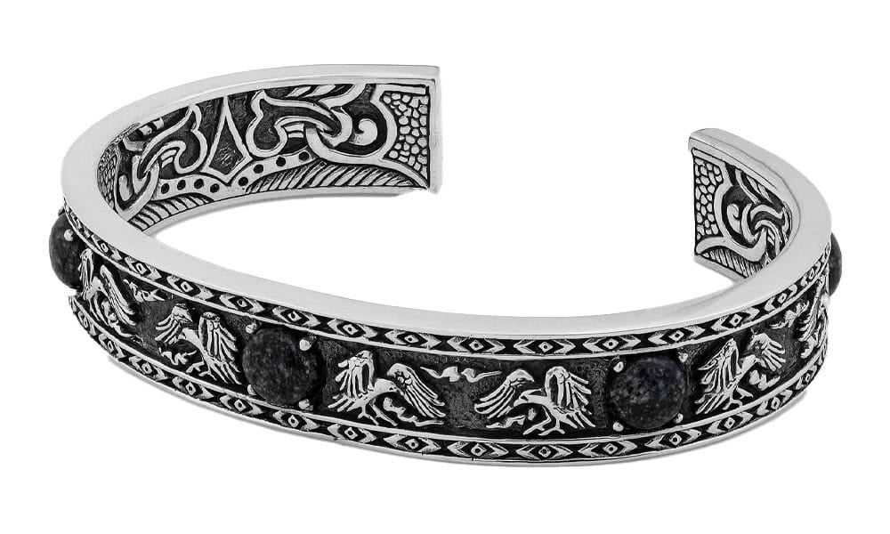 Clocks and Colours bracelets are built primarily from solid sterling silver, often oxidised for a more weathered look, and accented with natural stones, leather or engraved hardware. The designs are unapologetically masculine—wolves, skulls, nautical motifs and geometric forms all feature heavily—and every piece is made in small batches with artisanal attention to detail.