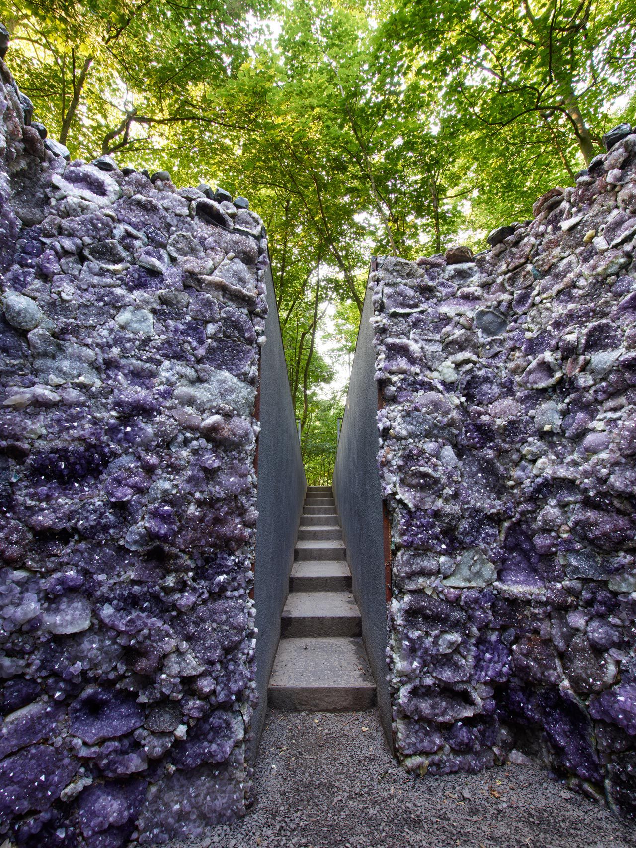 The artworks at Jupiter Artland have a recurring undertone related energy and flow, the culmination of this being the “Light Pours Out of Me” amethyst grotto by British artist Anya Gallaccio (2012). This fascination with amethyst reveals itself in the execution of the X MUSE vodka itself, the purple crystal often being displayed concurrently with the bottle, reminding drinkers of its role in the liquid’s creation—more to follow.
