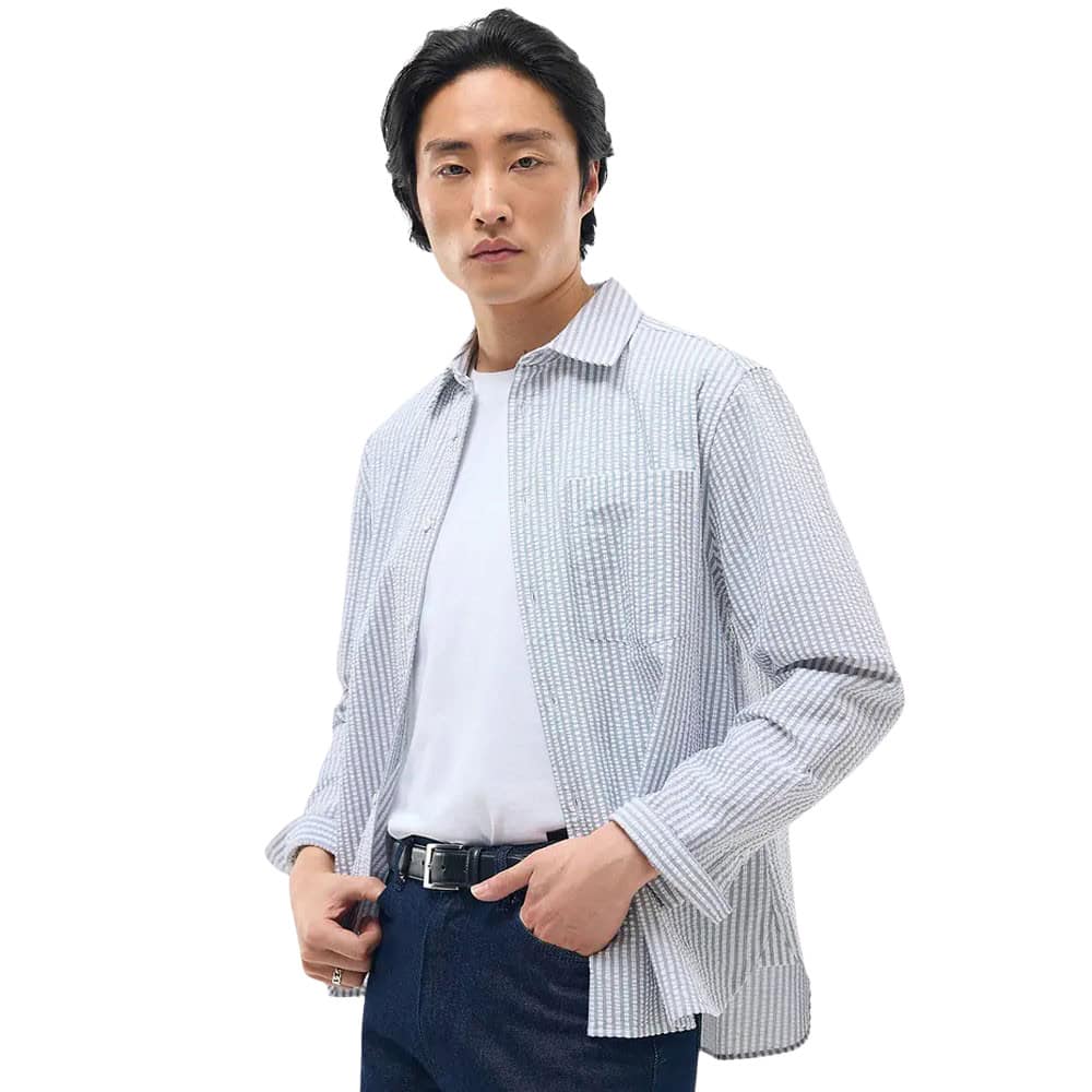 Swapping the Oxford cloth for seersucker allows you to keep wearing a long-sleeve shirt in the heat thanks to the breathability and cooling properties of the material.