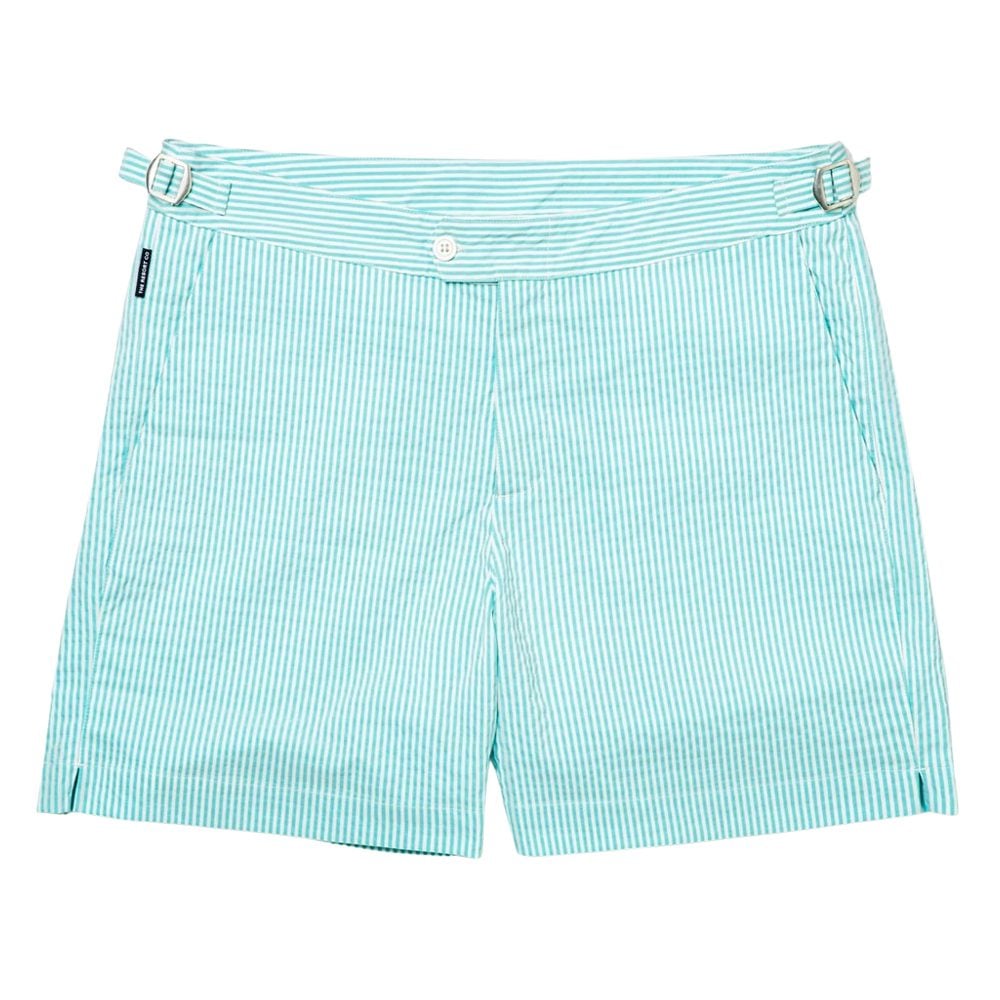 - The Resort Co Tailored Swim Shorts Turquoise Seersucker