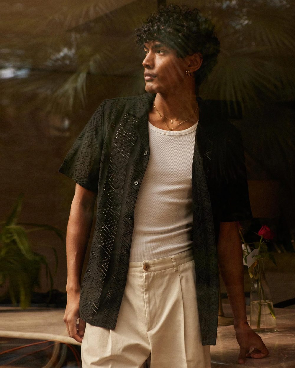 But don’t despair; arm yourself with a knitted shirt instead. Obviously, you can’t layer up in heavy knitwear when it’s hot outside, so this is the next best thing, and you might be surprised by how comfortable and breathable the material is.