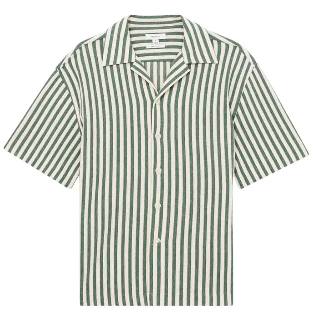 - Reiss Trig Textured Stripe Cuban-Collar Shirt
