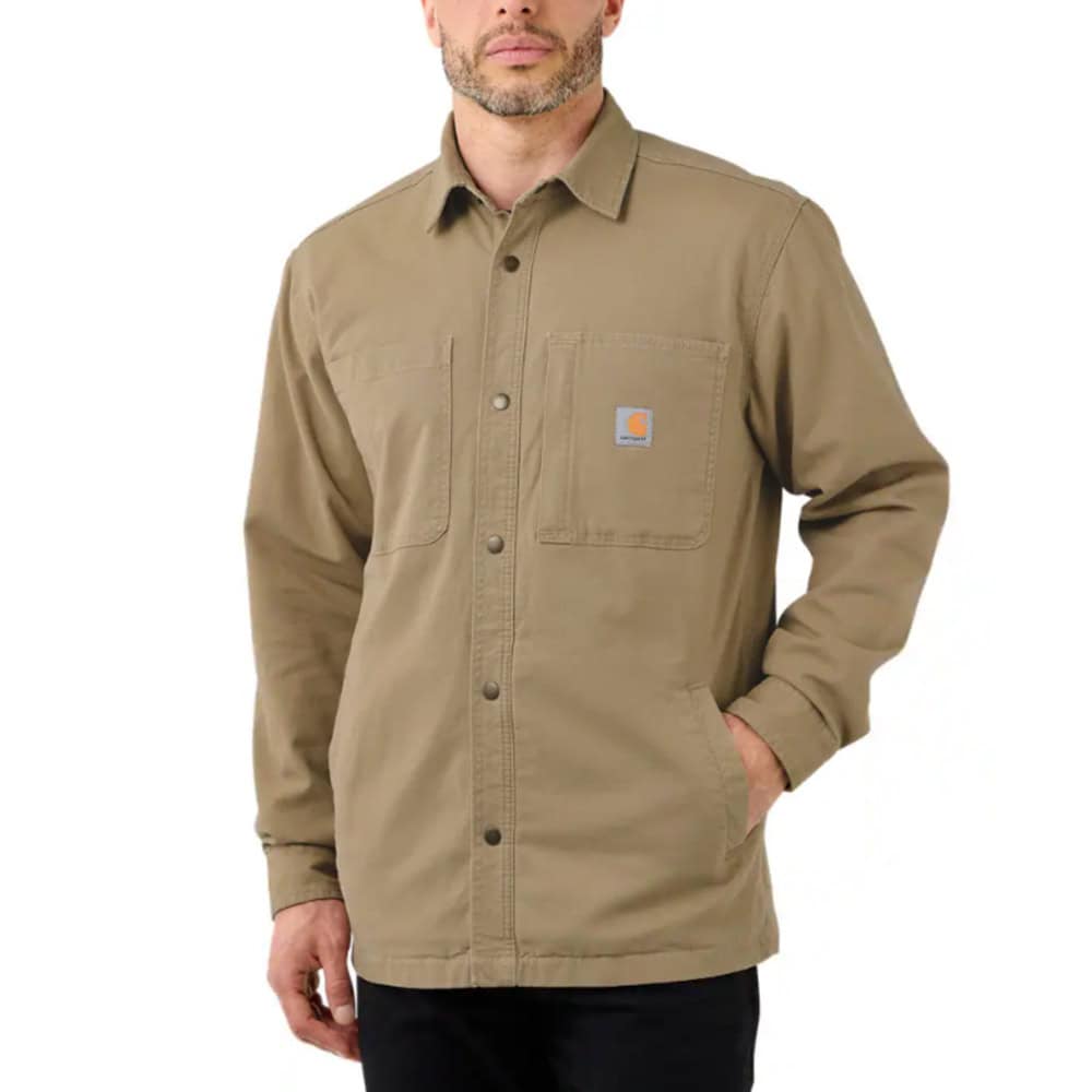 - Carhartt Rugged Flex™ Relaxed Fit Canvas Fleece-Lined Snap-Front Shirt Jac