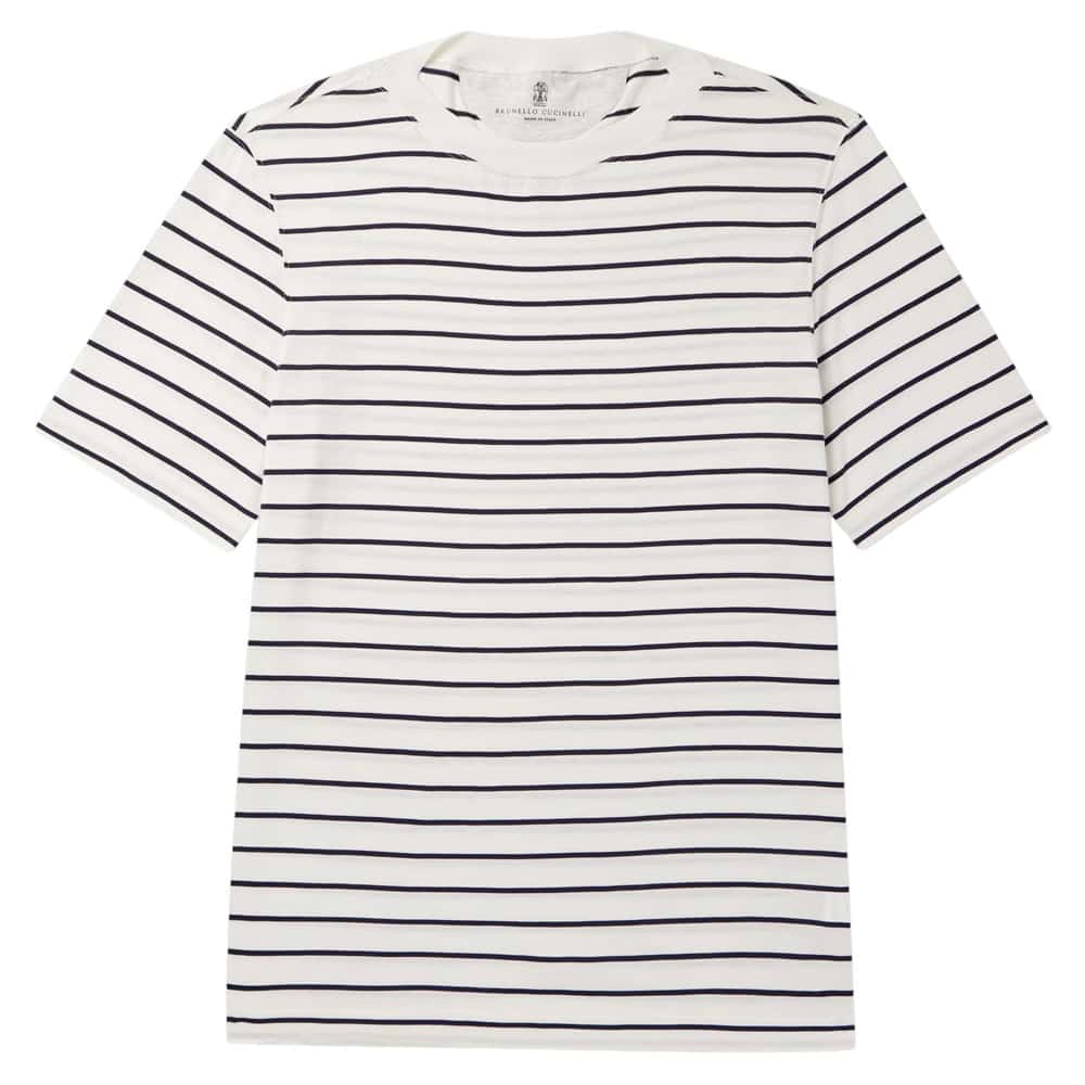 - Brunello Cucinelli Striped Silk and Cotton-Blend Jersey T-Shirt
