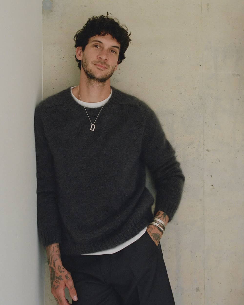 Instead, a nice slim chain in gold or silver will do, with a modest pendant in the matching metal to create a subtle focal point. Check out Miansai and Vitaly for some suitable options.