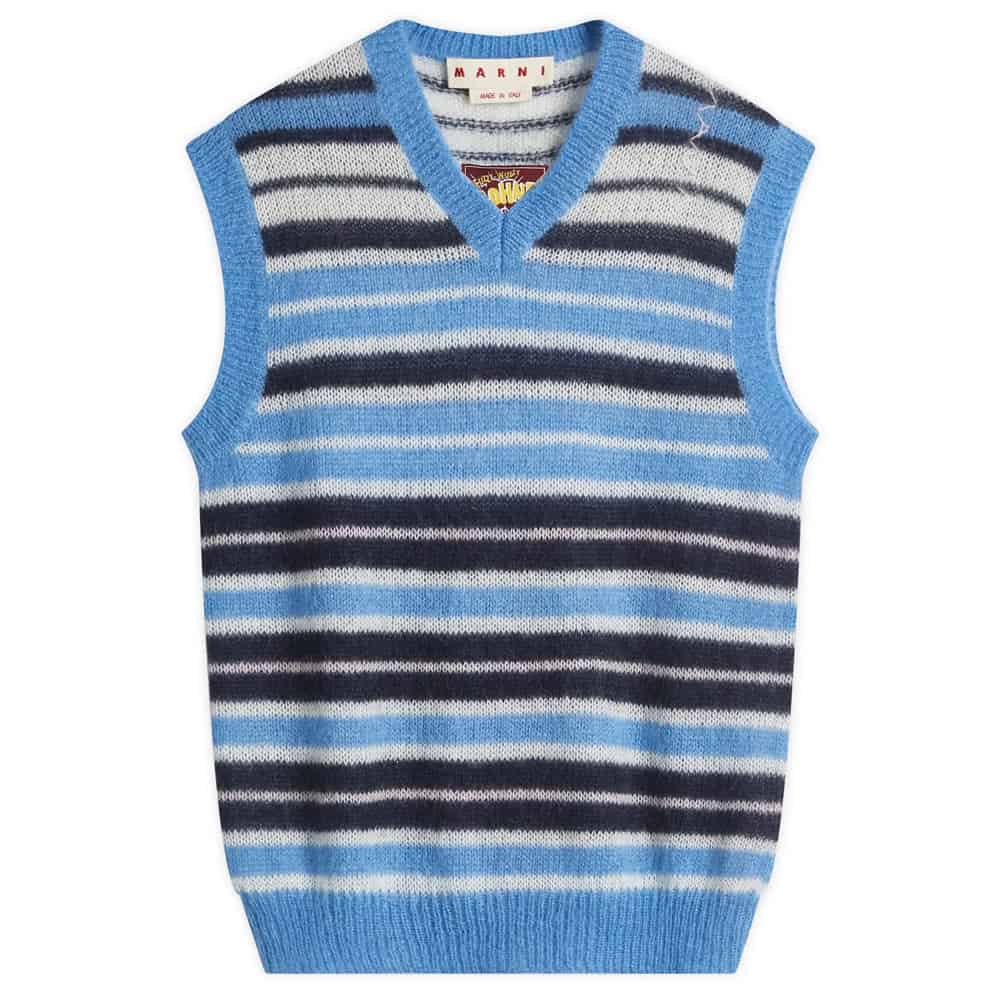 The trick to pulling it off is to tap into its eccentric flair. There’s no shying away from the fact you’re wearing a sleeveless jumper, so why not make it the centre piece of your look? Opt for a colourful version complete with a geometric print or abstract pattern and lean into the playful, vintage feel.