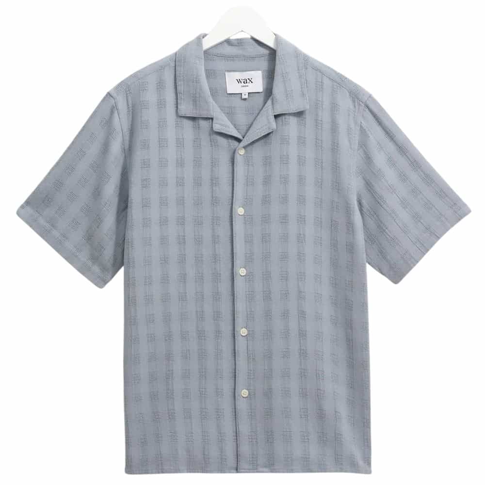 - Wax London Didcot – Blue Open Weave Short-Sleeve Cotton Shirt
