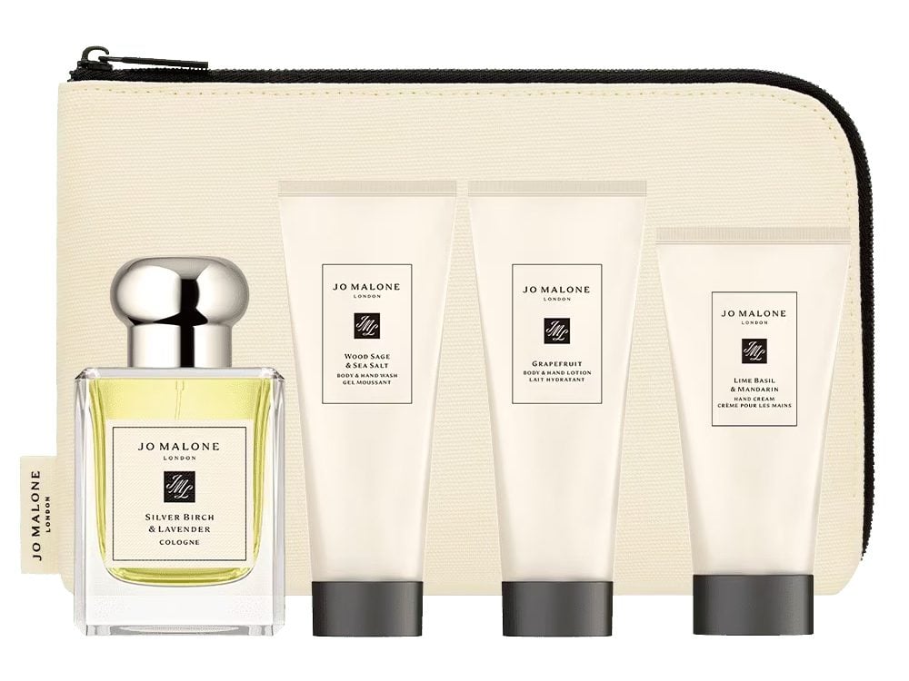 Jo Malone might be better known for its women’s range, but the men’s edit is just as good. Coming in a handy travel bag, this set is made up of the brand’s Silver Birch & Lavender cologne, as well as an exfoliating shower gel, a woody hand wash and a grapefruit body and hand lotion.