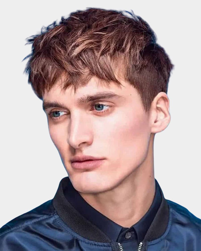 Part French crop, part Caesar cut—this is the sharpest hairstyle in the room. The fringe is shorter and sits higher on the forehead, while the top stays cropped close with tight texturing. It’s a little more structured, looks slightly more aggressive, and is seriously easy to style.
