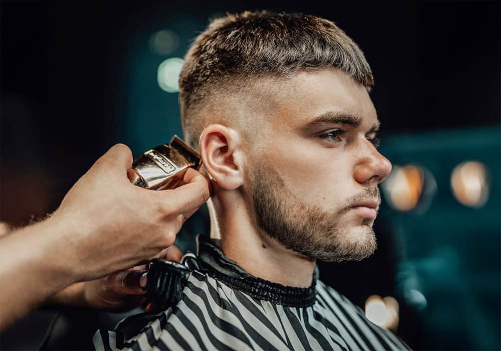 - Back and sides faded, tapered or clipped tight