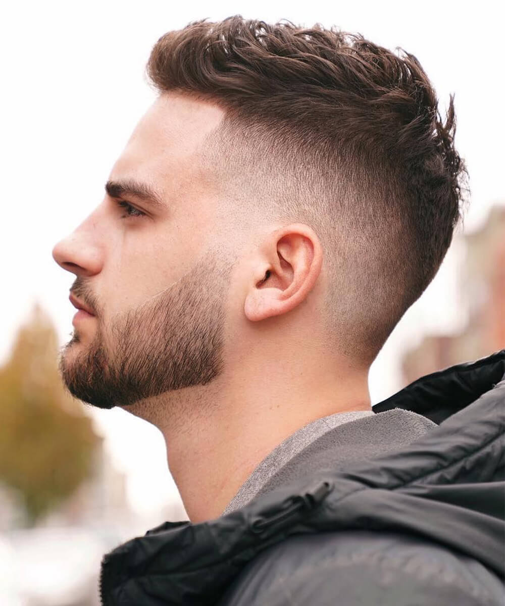 This is a low-maintenance style with little to no styling required, but you will need to have the fade touched up regularly to stop it from growing out.