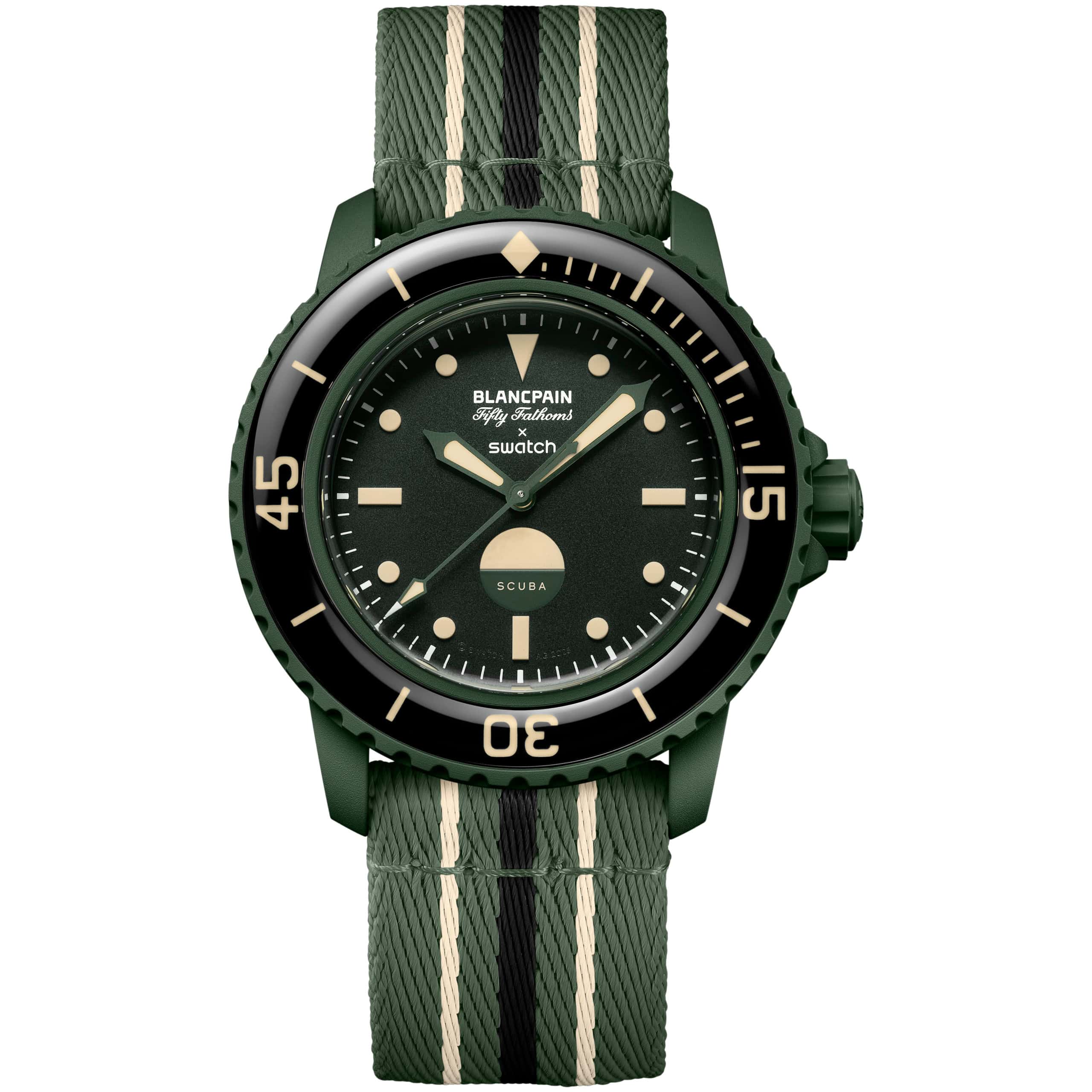 Watch collectors, and anyone with a fondness for history, diving or nerdy facts will love the detail in this new watch from Swiss watchmaker, Blancpain. Marking the 70th anniversary of the Fifty Fathoms, Blancpain has crafted a unique collection of timepieces, in collaboration with Swatch, that celebrate it’s renowned first diver’s watch. In 1953, when the original was launched, fifty fathoms (91m/300ft) was the maximum achievable depth for scuba divers.