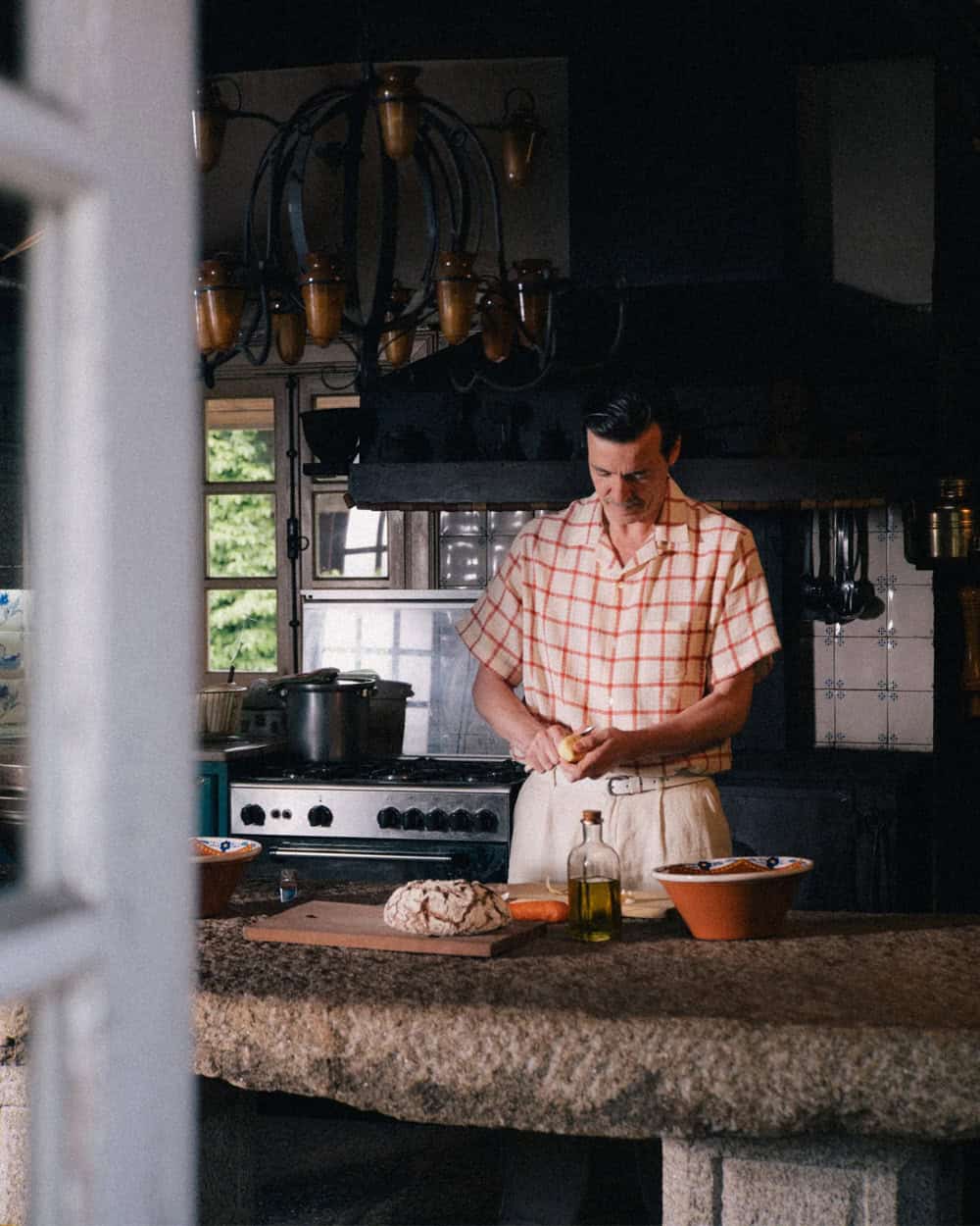 He’s making salads. He’s content in his own company. There are probably some excellent bottles tucked beneath his chateau, and he’s got a go-to combo of tassel loafers, cotton chinos and a layered overshirt-shirt situation he wears into town when he’s had enough of his book.