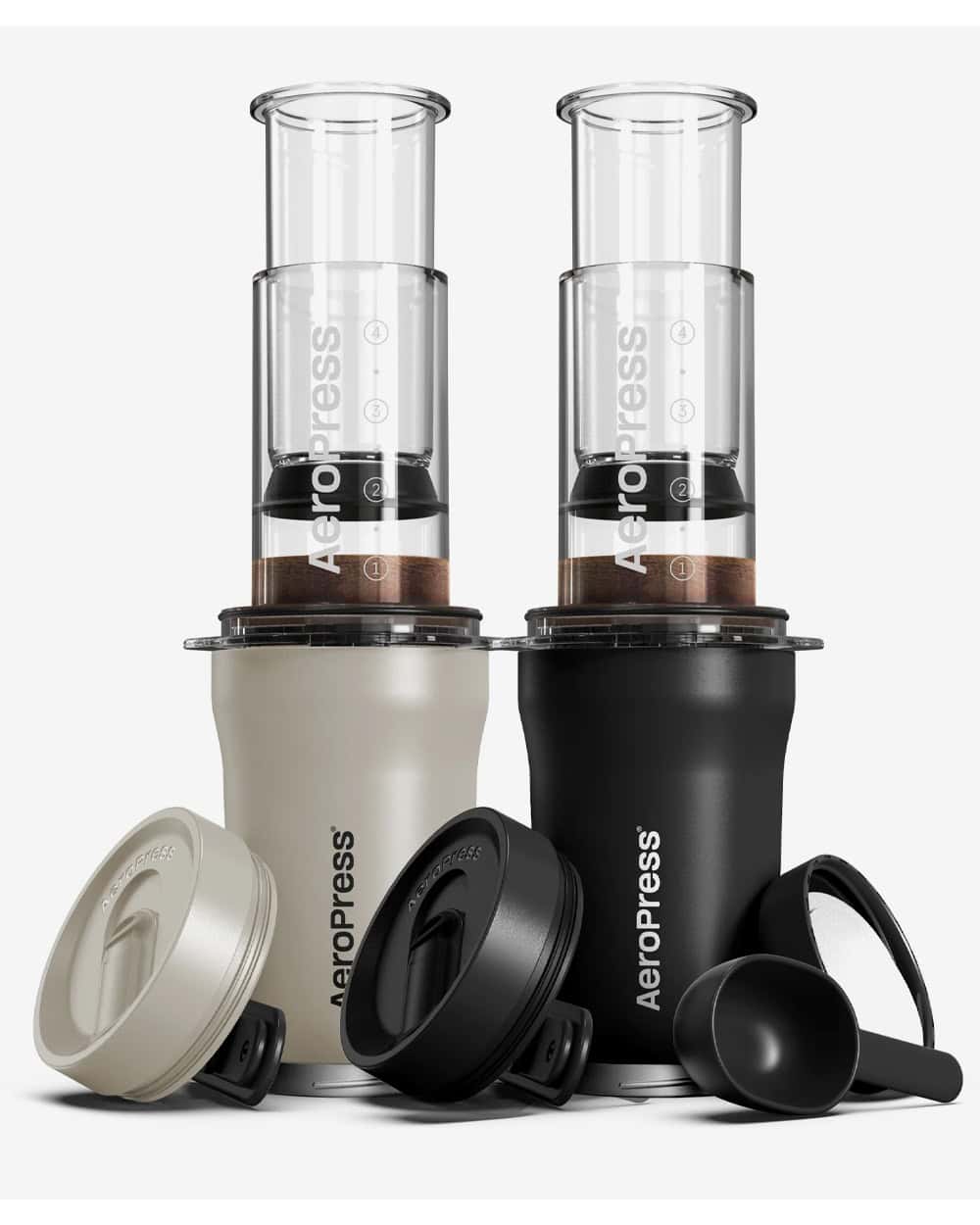 However, greatness can always be improved, and that’s why they made the Aeropress Go Plus. It’s the same excellent coffee-making system, upgraded to a sturdy portable design and equipped with a custom-made travel mug for quick, easy on-the-move brewing.