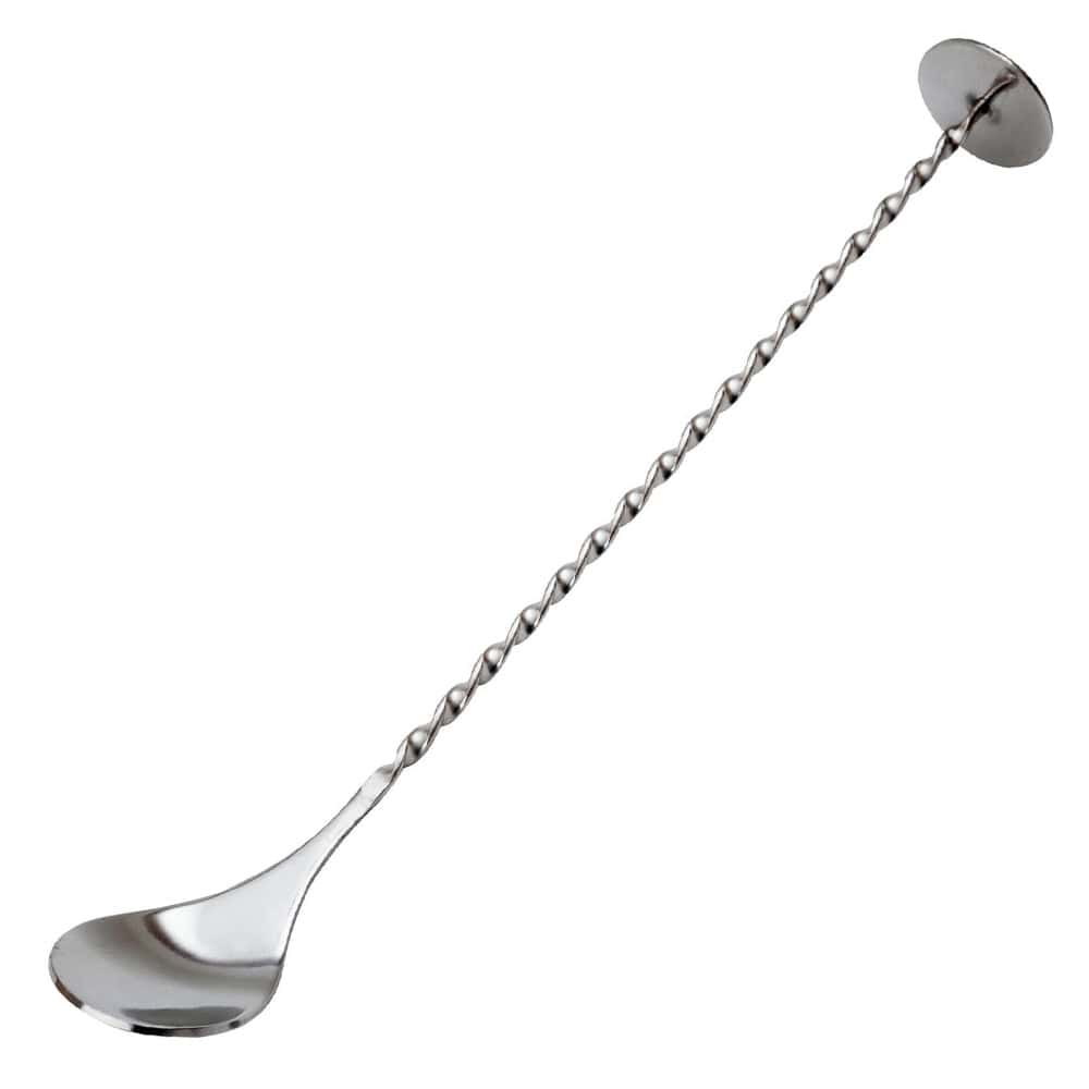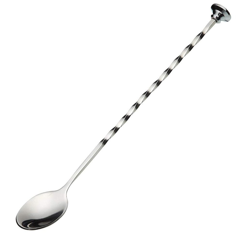 Long metal stainless steel spoon for stirring your creations. Not much else to it.