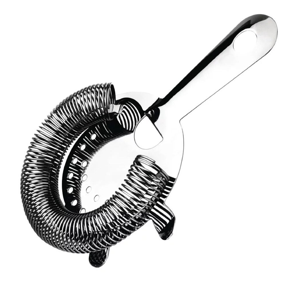 Every home bar setup should have two strainers. The first, the Hawthorne, is the iconic model with what looks like a tightly coiled spring around the edge, designed to keep back the ice and unwanted ingredients in the shaker. The other, the fine mesh strainer, is for filtering out the smaller bits that slip through the Hawthorne.