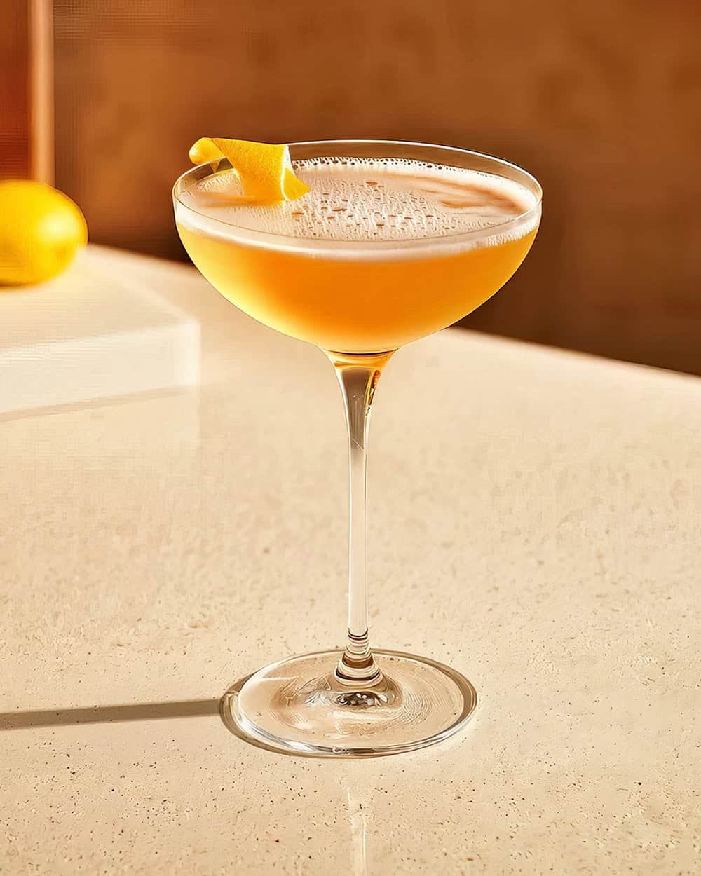 Shake until the shaker chills your hands. Strain into a coupe glass and finish with orange peel for a rich flavour or lemon peel for freshness.