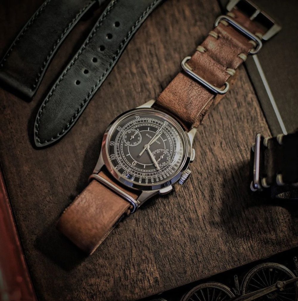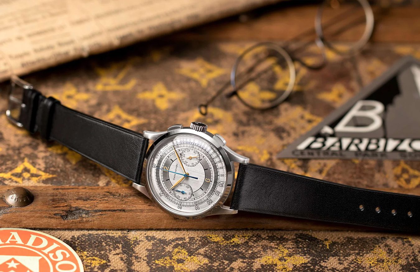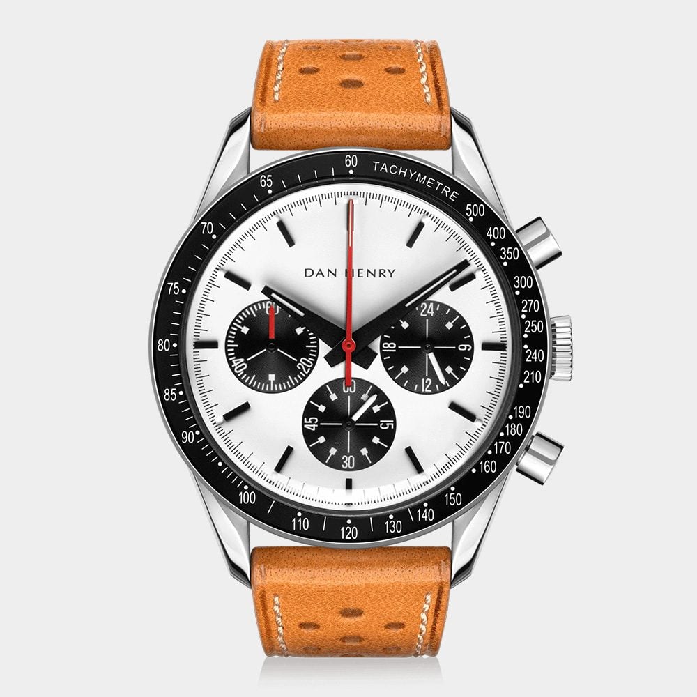 It has the three sub-dials for elapsed time, hours and minutes, a pristine white dial (should you choose the classic panda) against which are black sub-dials, and subtle colour pops from the two red hands. Completing the vintage vibe is the perforated strap that comes with the true panda dial.
