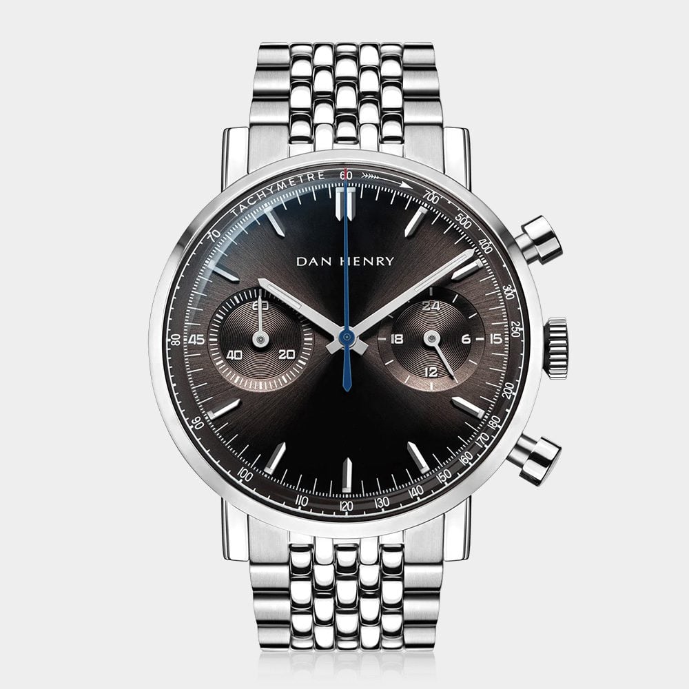 The case is 38mm and it comes on a stylish ‘grain of rice’ bracelet along with a stitched leather strap in a complementary shade. For instance, Slate Grey comes with one in a lovely light tan, which can be switched while on the move thanks to Dan Henry’s Easy Release system. Just don’t do it while driving, you’re not actually James Bond you know.