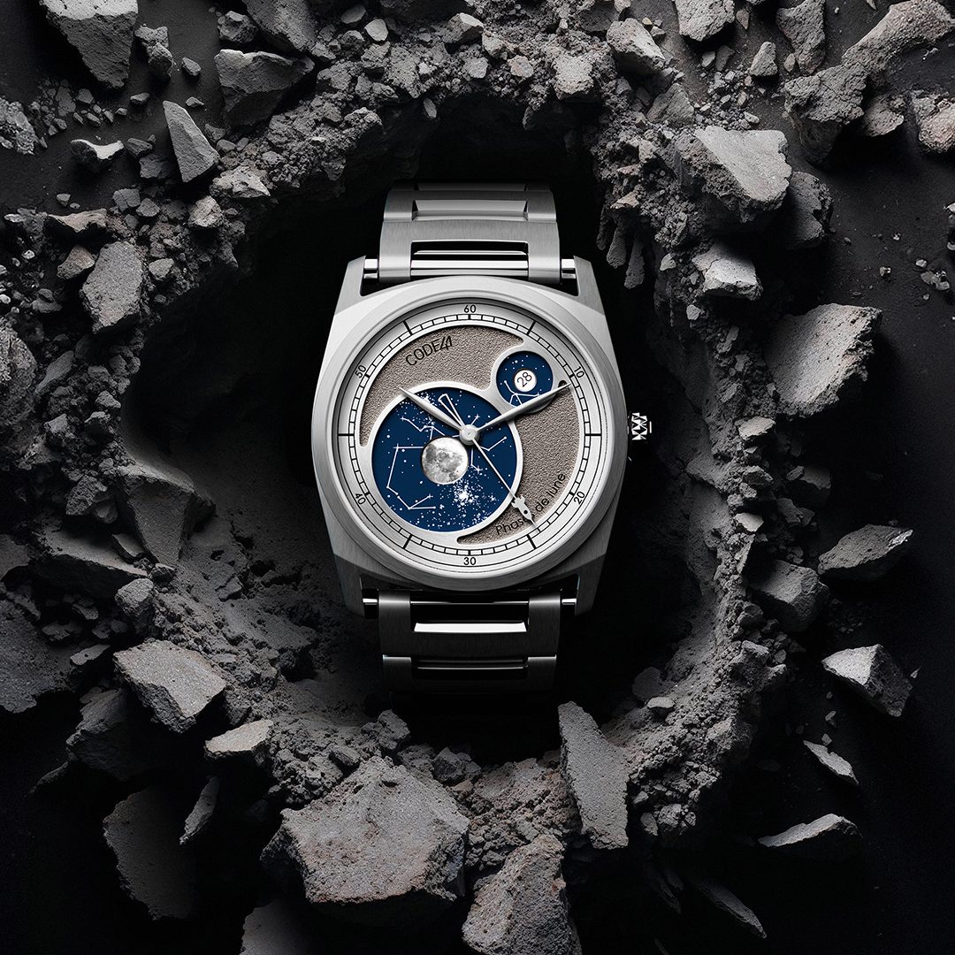 This being CODE41 though, the team wasn’t ever going to stick a tiny insubstantial window at six o’clock. If it was going to do a moonphase, it was going to make that complication the star.
