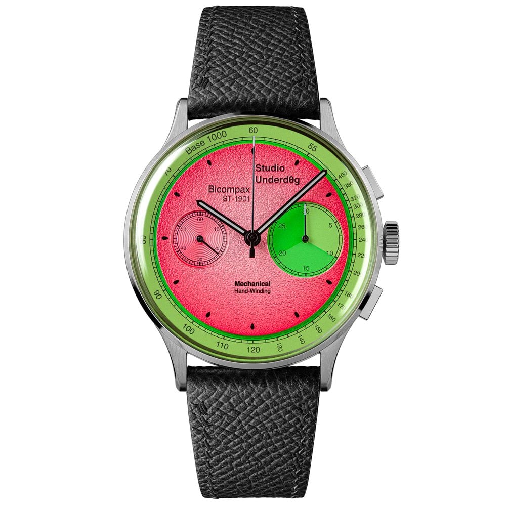 Mint Choc Chip is another inspiration. Gimmicky? Not at all. Founder Richard Benc’s Bicompax model is an otherwise classic hand-wound chronograph.