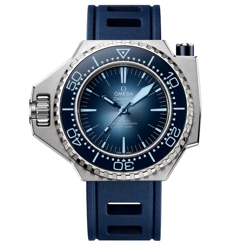 In keeping with its depth, the dial graduates from dark blue to black, with the glow at the centre reminiscent of a dirigible’s headlights in dark ocean. It’s good to a technically useless 1,200m – unless, of course, you’re a saturation diver for whom this watch was designed.