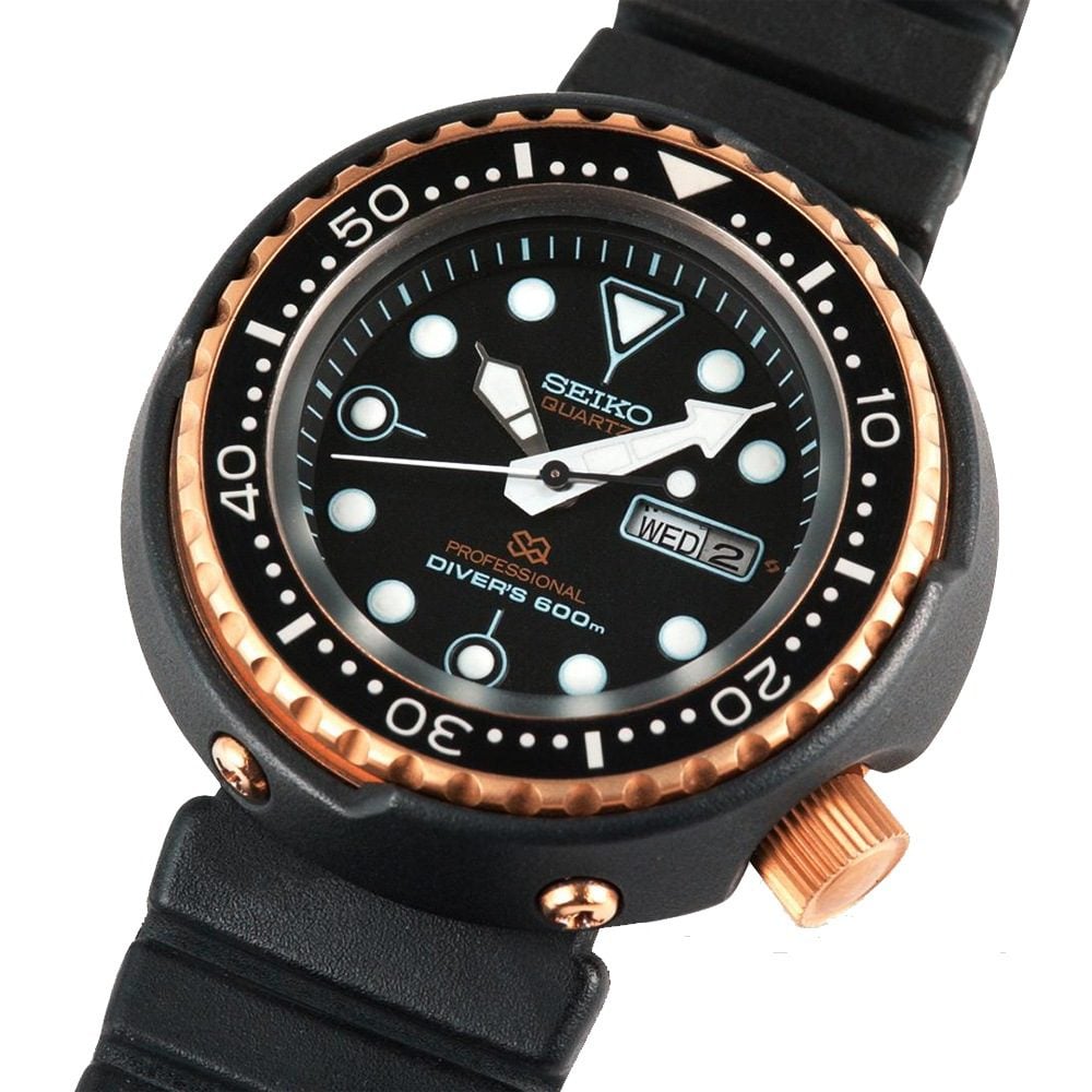 This 49mm beast of a watch can hit depths of 600m – which back when it was released in 1975 was insane – and is incredibly rugged. What looks like gold is actually titanium nitride, an extremely hard ceramic.