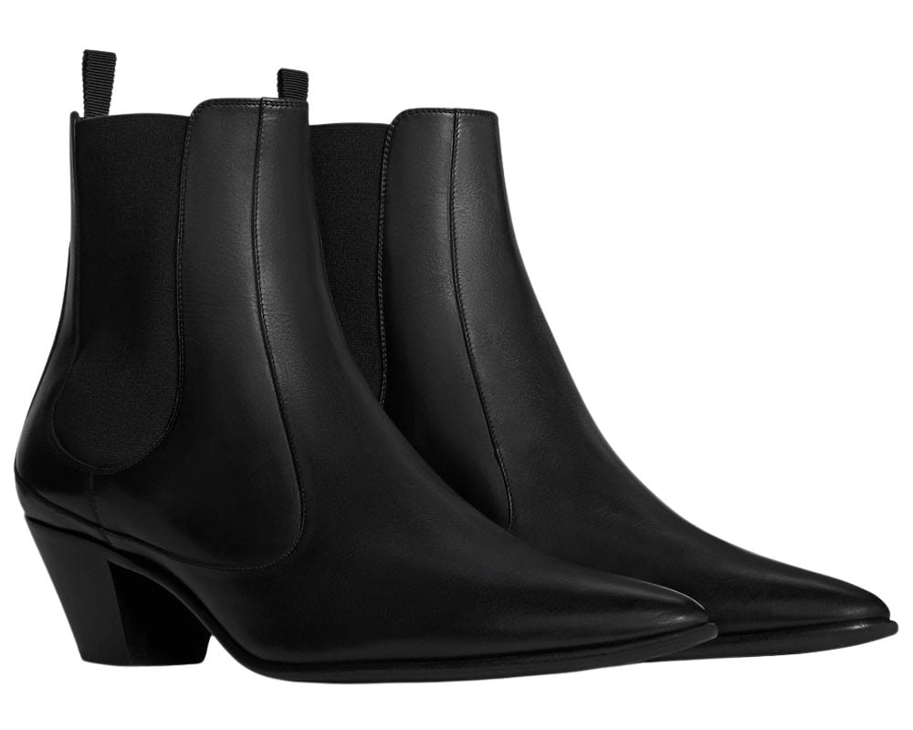 What’s a luxury rock n roll brand without an excellent line-up of ankle-high boots? Celine Homme, under the creative direction of Hedi Slimane, brings a mix of punk and glamour to the Chelsea boot. Think pointy toes, Cuban heels, biker embellishments and shiny calfskin leather. All of which look sublime with a pair of skinny black trousers.
