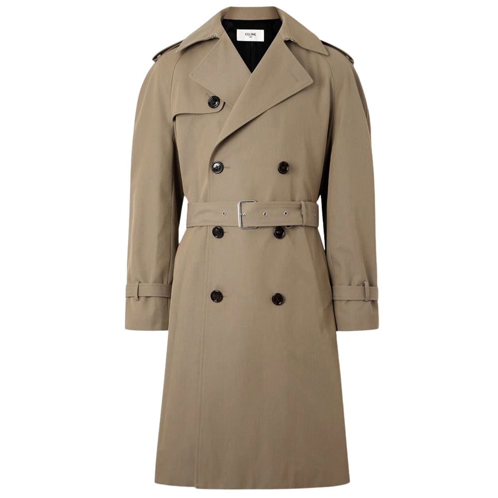 - CELINE HOMME Double-Breasted Wool and Cotton-Blend Gabardine Trench Coat