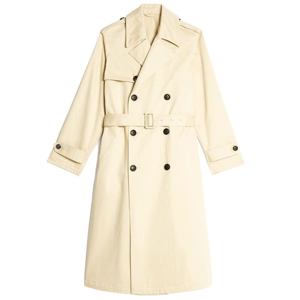 Traditionally the trench coat featured a double-breasted cut, but single-breasted is a legitimate modern-day option. A double-breasted design will likely boast up to 10 front buttons, wide lapels, a storm flap and button-close pockets. But no matter which cut you opt for, ensure that it comes with adjustable sleeves and a belted waist for a secure, form-flattering fit.