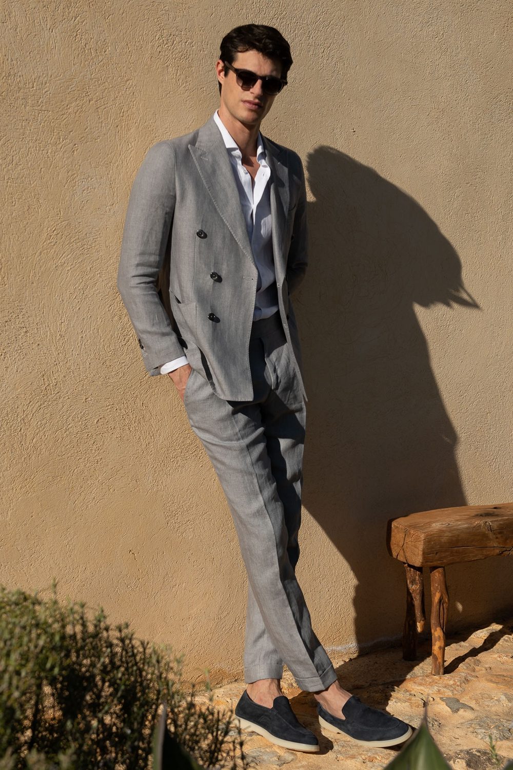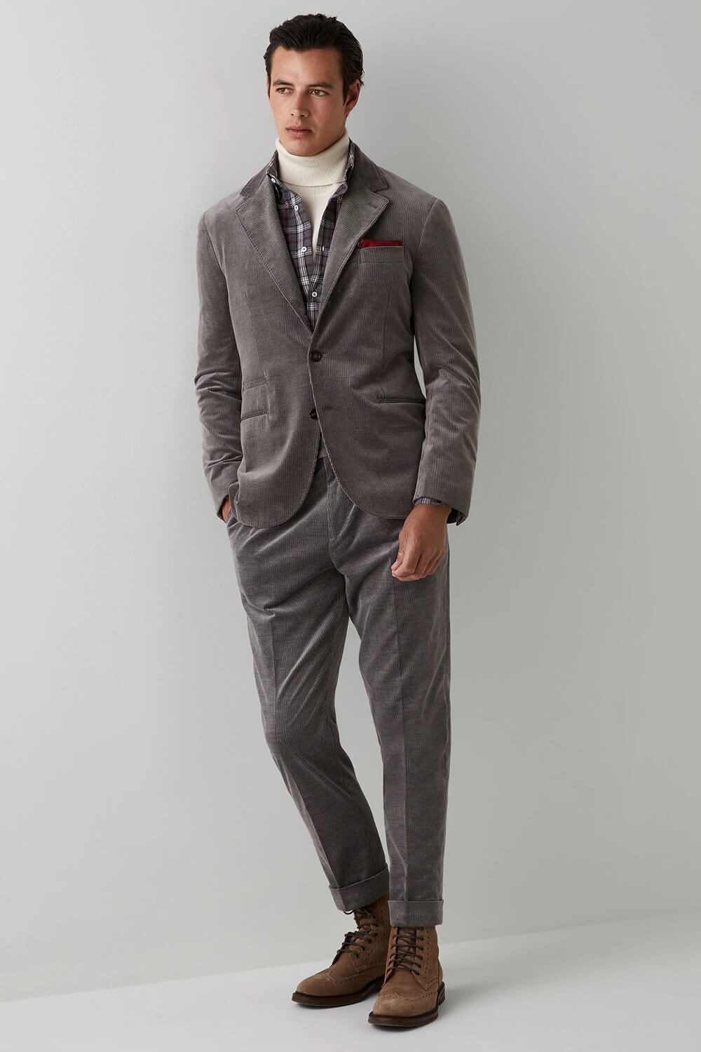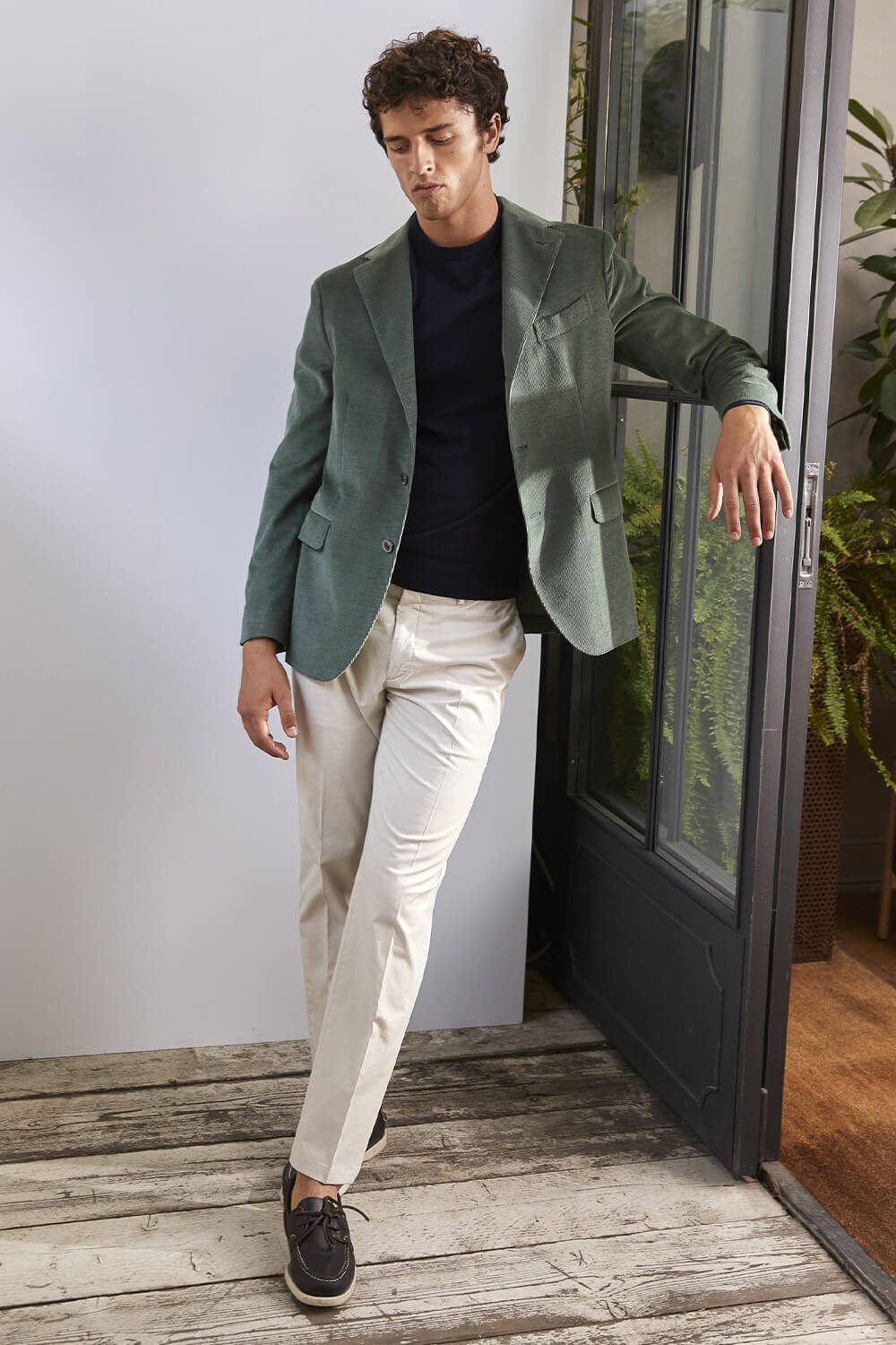 New takes on the DB, however, respect our preference for more relaxed dressing, and come in lighter-weight fabrics and softer fits, cut close to the shoulder while allowing movement through the body. Don’t be scared of wearing just the jacket with a pair of jeans either.