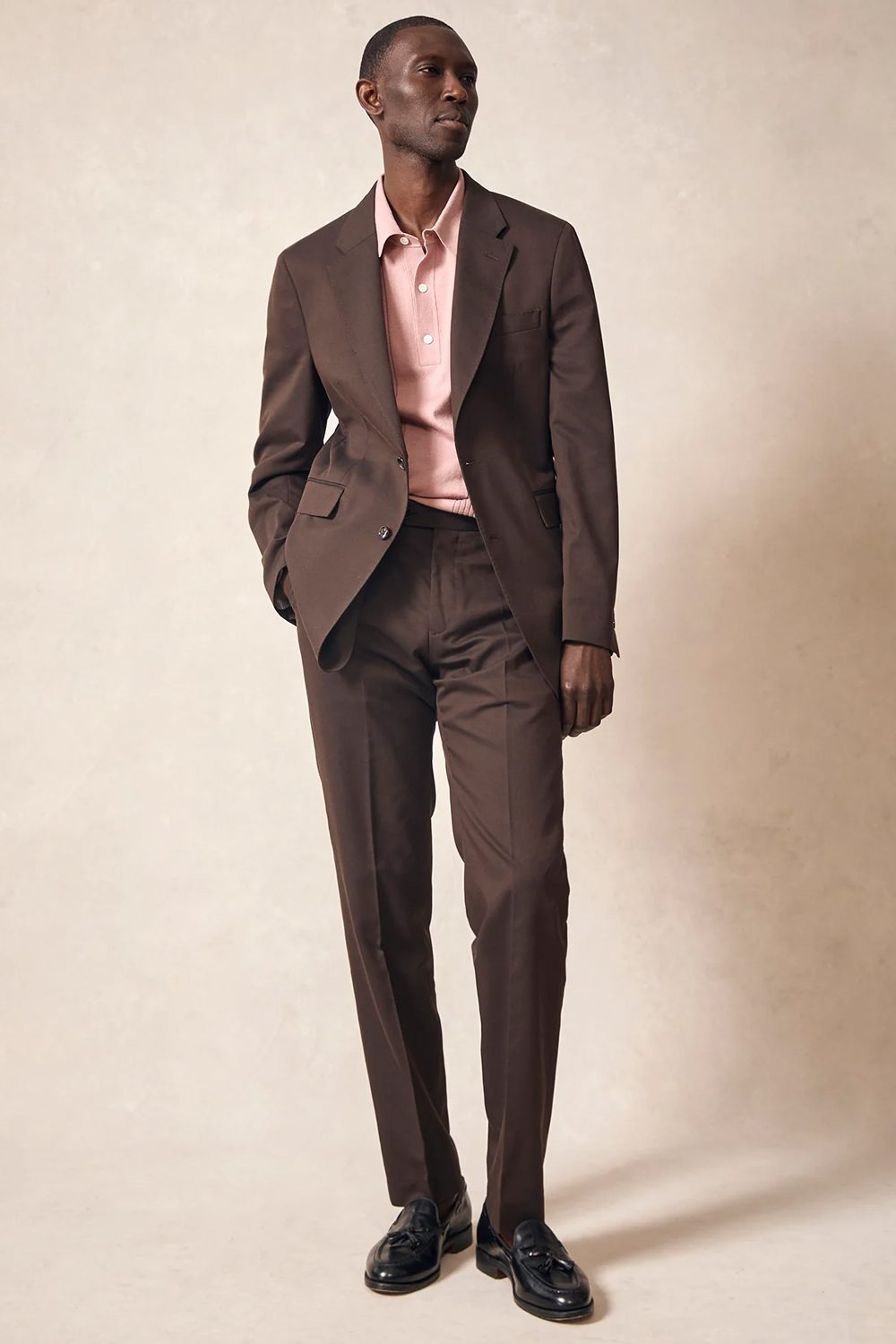 Make of this what you will but look to the catwalks and it’s apparent that brown is now being proffered as an option in suiting. Don’t think ill of brown, it’s a great shade: serious but warm, dark without being the more predictable navy or grey, kind to all skin tones. But pulling off a brown suit takes forethought – be careful to break up your ensemble with some light but complementary shades, the likes of a chambray shirt or baby blue tee, or a charcoal polo, for instance.