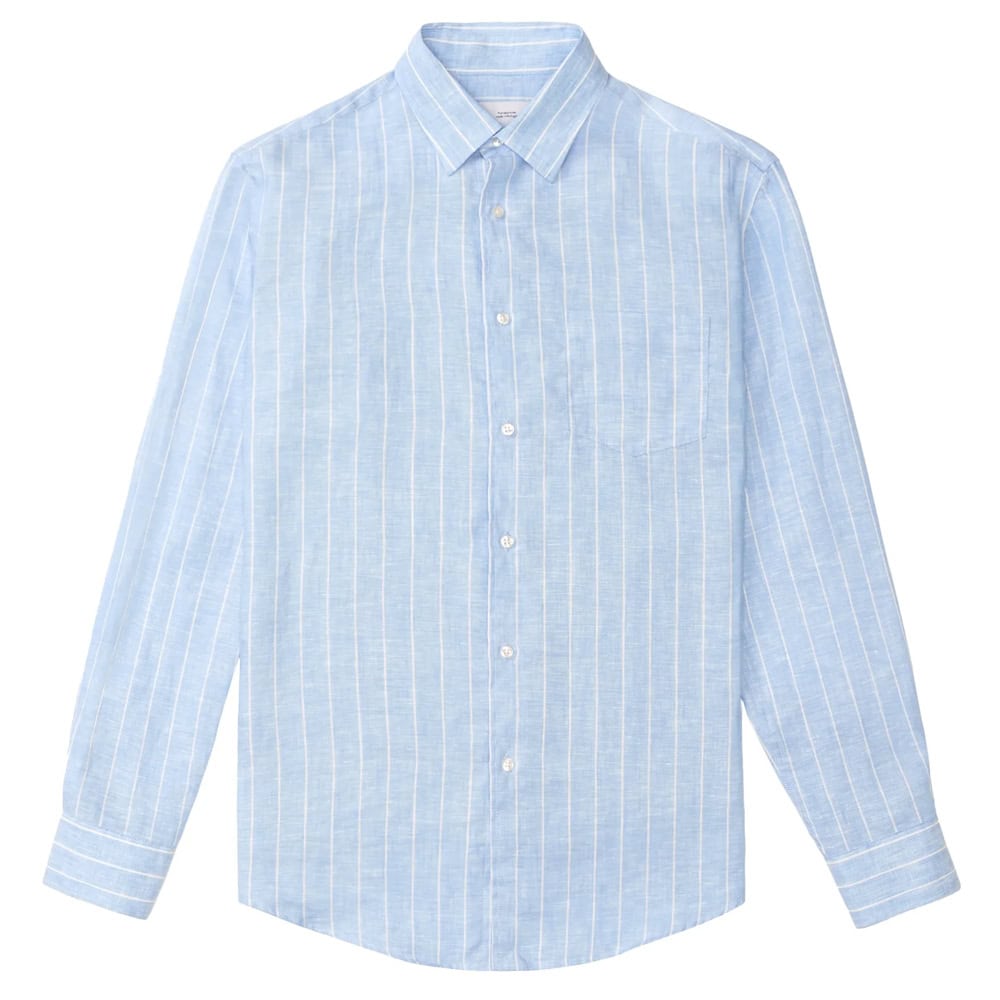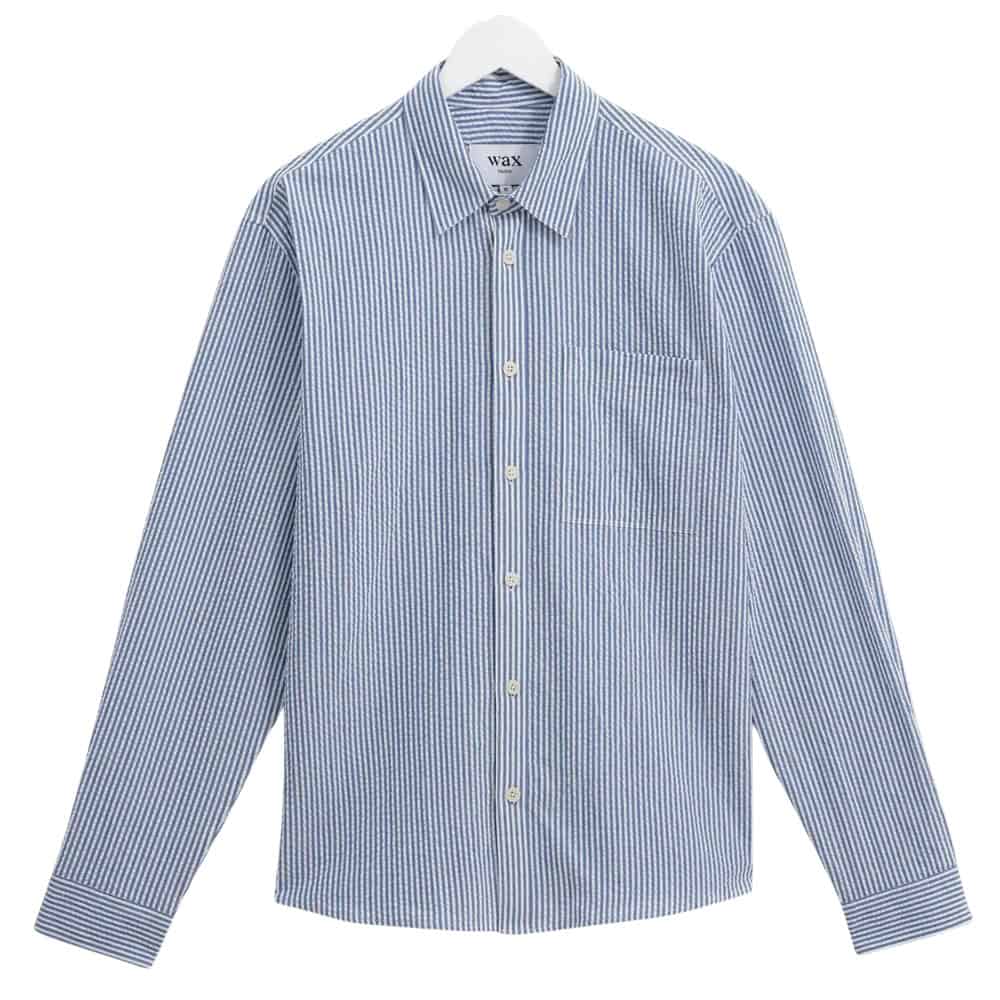 - Wax London Rove – Blue Striped Cotton Seersucker Shirt