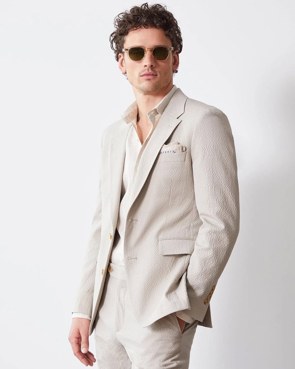 Next to linen, seersucker is one of the definitive warm-weather fabrics. It’s light, it’s cool and it lends itself perfectly to spring and summer wedding suiting.