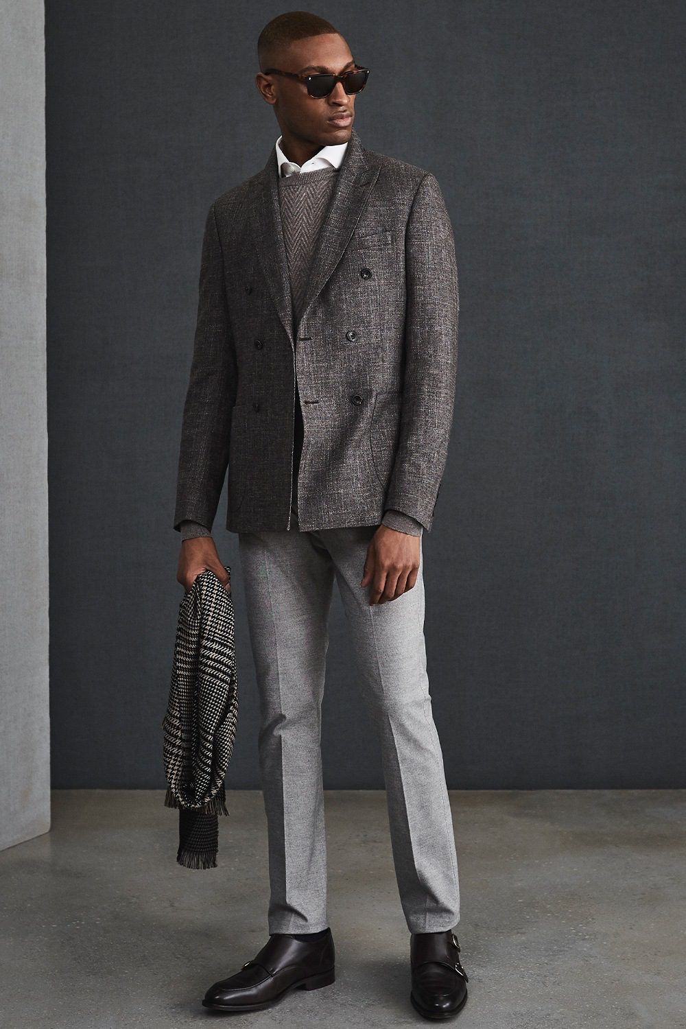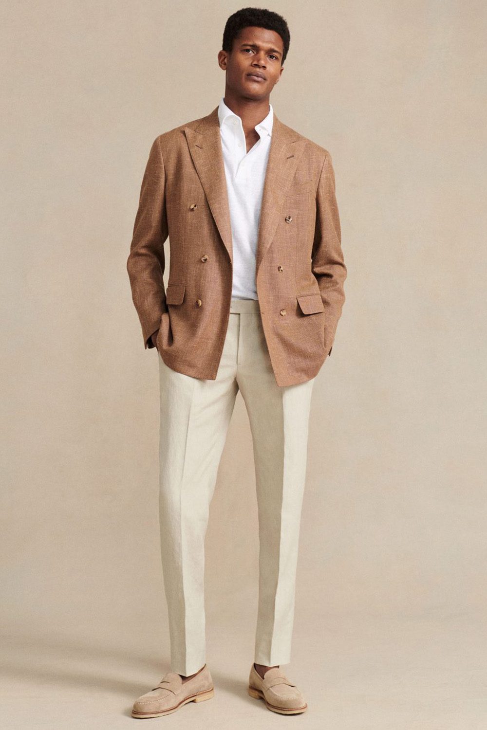 This one is best pulled off with a hearty dose of sprezzatura. Jacket-wise, why not go double-breasted? If it’s colder weather, you could even introduce a tonal waistcoat to give this combo an extra dimension. Other touches like a Panama hat, a scarf and/or a vibrant pocket square will help you achieve that sense of effortless nonchalance without coming across as try-hard (it’s a fine balance).