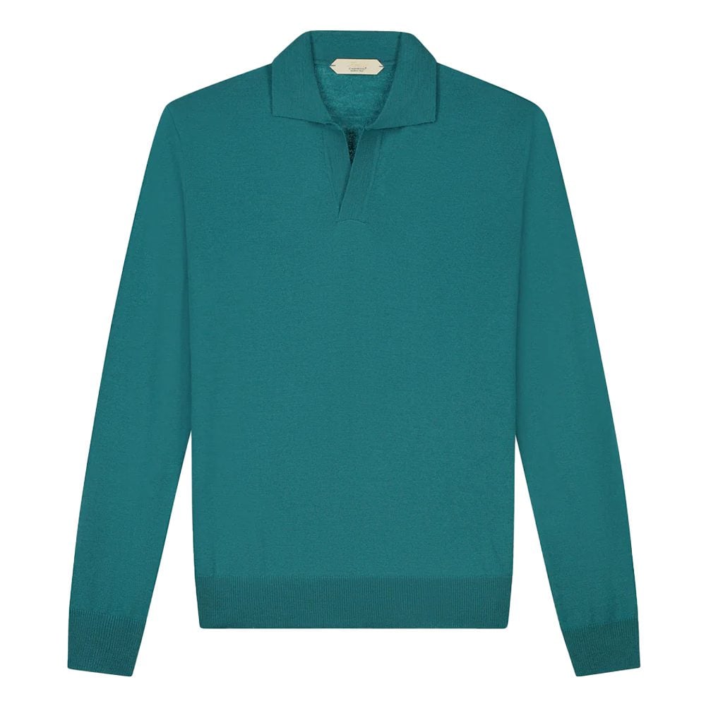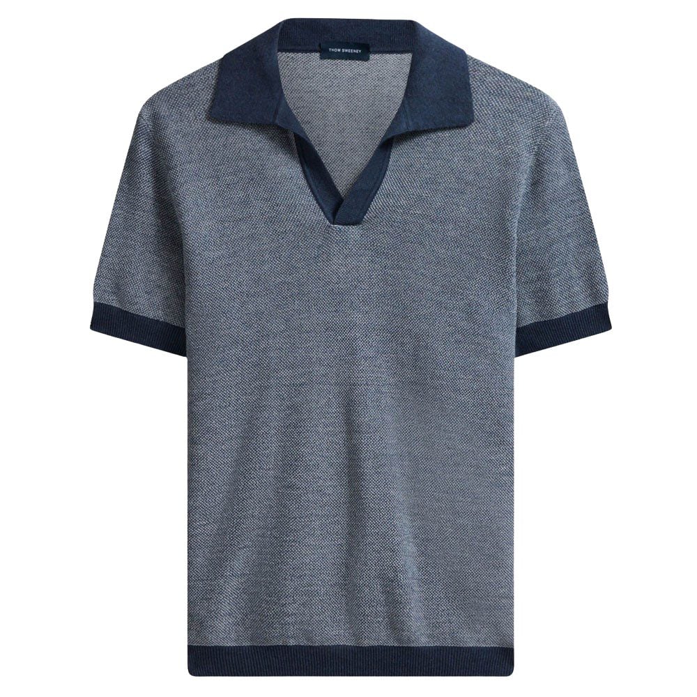 - Thom Sweeney Cotton Linen Contrast Knitted Polo Shirt