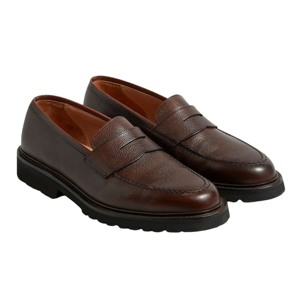- Thom Sweeney Pebble Grain Leather Penny Loafer Shoes